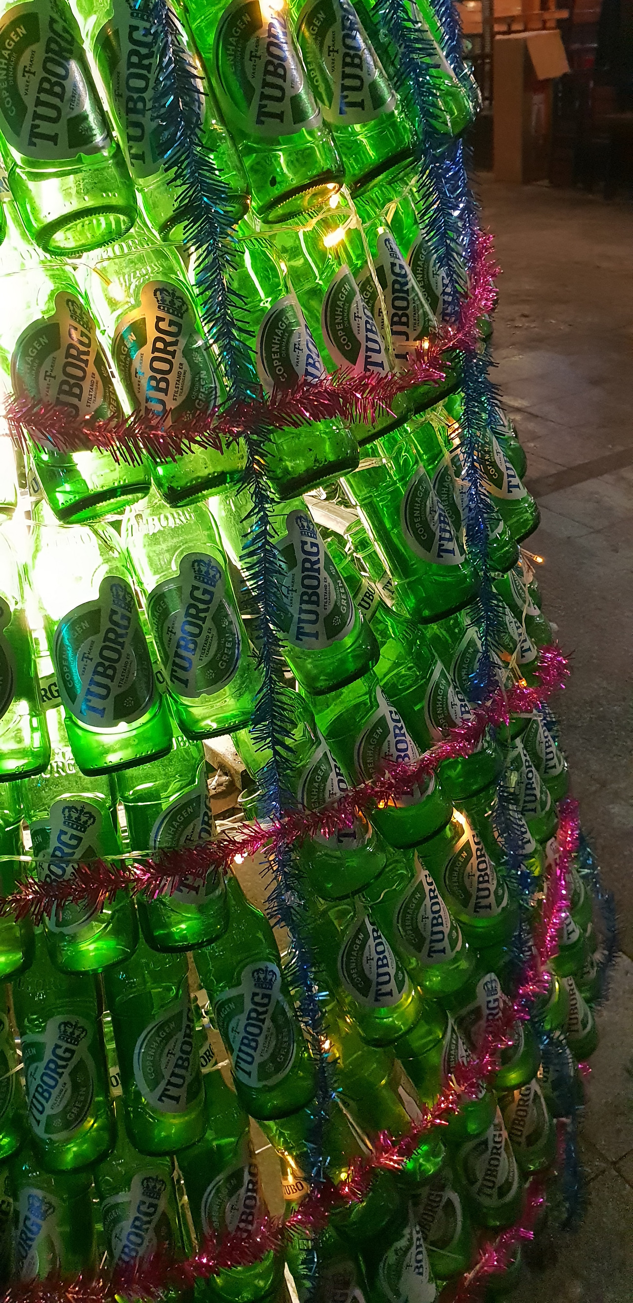 맥주병으로 만든 크리스마스트리. 아이디어가 좋다.