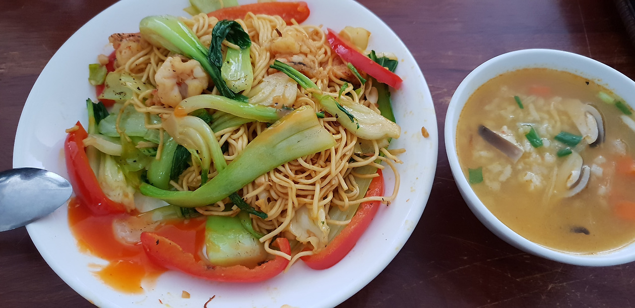 신투어로 버스 타러 가는 길에 크루아상이랑 빵을 샀다. 어제 산 집 빵맛이 좀 나은 것 같아서, 가는 길에 들렀다. 베트남 빵 여태 먹은 게 다 맛이 없었다. 버스 타기 전에 이른 점심을 먹으러 어제 갔던 꽌 한에 다시 갔다. 나는 속이 안 좋아 죽을 먹고, 남편은 볶음국수를 먹었다. 그런데 어제 먹은 죽과 맛이 다르다. 어제는 우리나라 죽처럼 부드 럽고 순한 맛이었는데, 오늘은 짬뽕국물에 밥 말은 맛이다. 역시 아무리 맛있어도 같은 식당에 두 번 오는 건 아닌 것 같다.