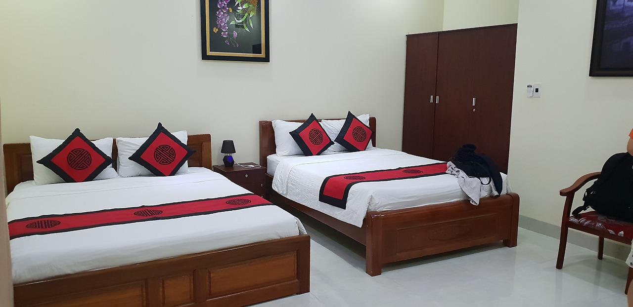 호이안 신투어 오피스 앞에 내려주는 줄 알았는데 시내 들어가기 전에 큰길 가에 내려 주어서 조금 걸어야 했다. 구글 지도 덕에 골목 안에 있는 홈스테이 집을 잘 찾아 들어갔다. 완전 옛날 집을 고친 집으로, 방이 굉장히 넓고 천장도 높고 문은 무거운 나무문이다. 아래층에서는 어린 딸이 공부하고 있고, 살림하는 방이 있다. 이틀에 48000원에 이 정도 방이면 아주 훌륭하다. 골목만 나가면 유명한 피 반미 집이 있다.