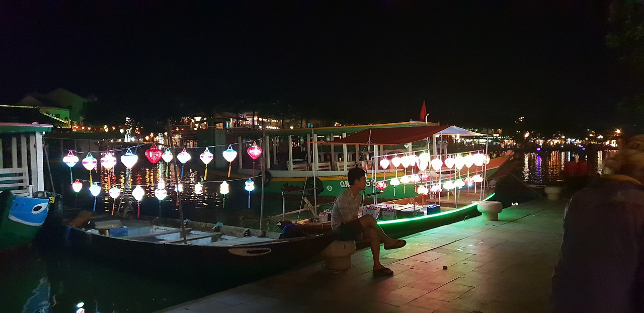 저녁 먹고 나서 호이안 야경을 보러 나섰다. 강변으로 가니 호객꾼이 극성이다. 보트를 타라는 것. 어디서 배웠는지 "배 탈래" 하고 반말 지꺼리다. '타십시오'해도 안탈 텐데....