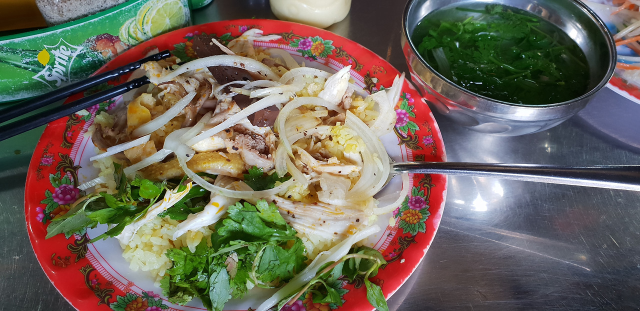 점심엔 유명한 호이안 음식이라는 껌가를 먹으러 갔다. 별건 아니고 닭고기 덮밥인데 닭국물로 밥을 했다고 한다.