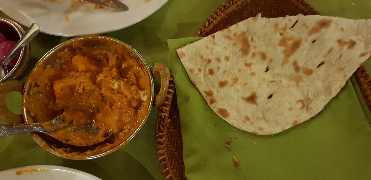 저녁은 집 근처 인도 레스토랑에서 커리를 먹기로 했다. 지나다가 본 집인데, 인터넷 평을 보니 음식 양이 많다고 해서 치킨 티카 마살라 커리 1인분과 난을 시켰다. 커리도 난도 뜨겁게 나오고 맛도 훌륭했다. 모자라면 밥도 시키려고 했는데, 그럴 필요 없이 딱 적당했다.