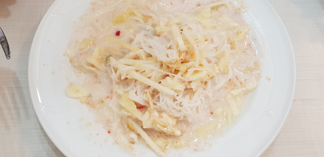 생강,마늘, 파인애플, 코코넛밀크?가 든 국수.맛은 뭐라고 설명할 수 없는 오묘한 맛이다.