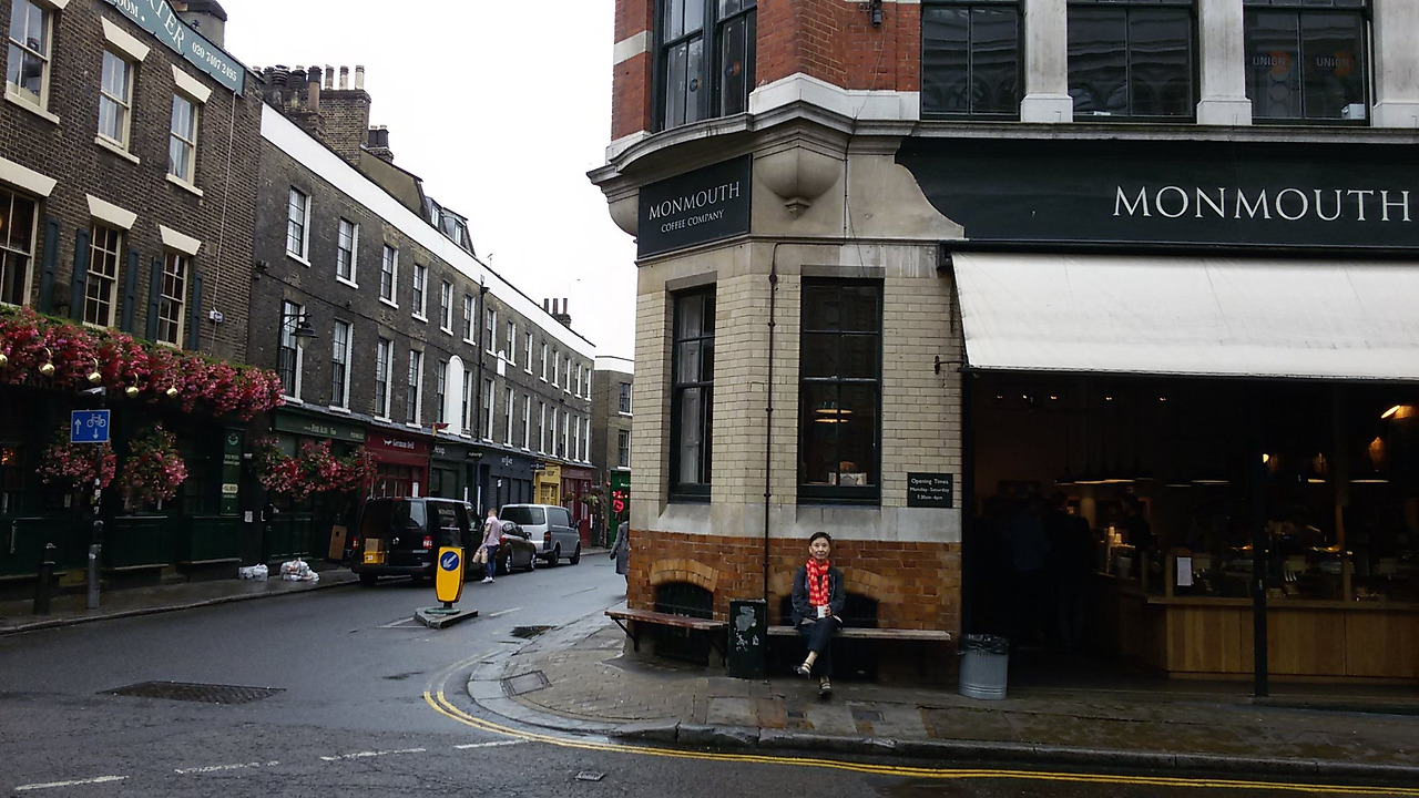 유명하다는 MON MOUTH CAFE 를 쉽게 발견했다. 크로아상과 flat white coffee 를 샀다. 안에 앉아 먹으면 빵값이 더 비싸단다. 문 바로 밖에 벤치가 있어서 거기 앉아 먹으면 거리구경도 하며 싸게 즐길 수 있다. 커피는 3.10 £. 크로아상은 한 개에 1.5£.