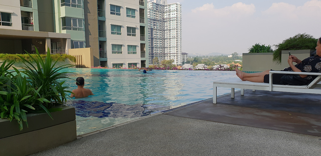 파타야에서 우리가 지내고 있는 콘도는 제법 규모가 크다. 몇 세대인지는 몰라도 큰 아파트 건물에 가운데 복도를 두고 양쪽으로 우리나라 오피스텔 같은 작은 집들이 한 층에 20여 채가 있는데, 그런 30층 건물이 4 채이다. 1 베드룸에 거실, 욕실, 싱크대만 있는 주방 ( 가스레인지나 전기레인지는 없다. )이 있는 작은 집이 대부분인 것 같고, 좀 큰 집도 있는 것 같다.