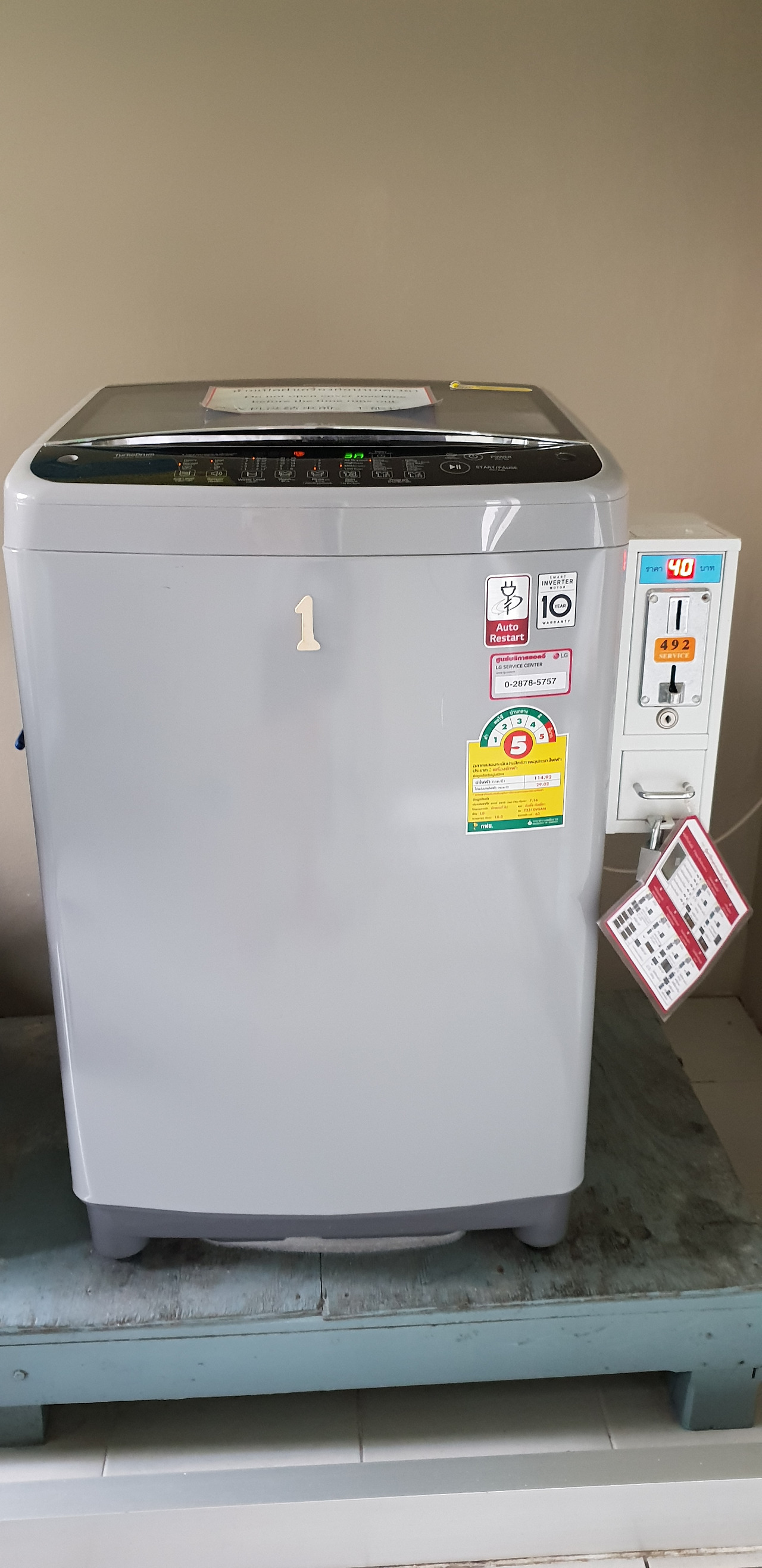세탁기는 한 번 돌리는데 40바트. 세탁기 3대, 건조기 1대 가 있는데, 건조기도 40바트.