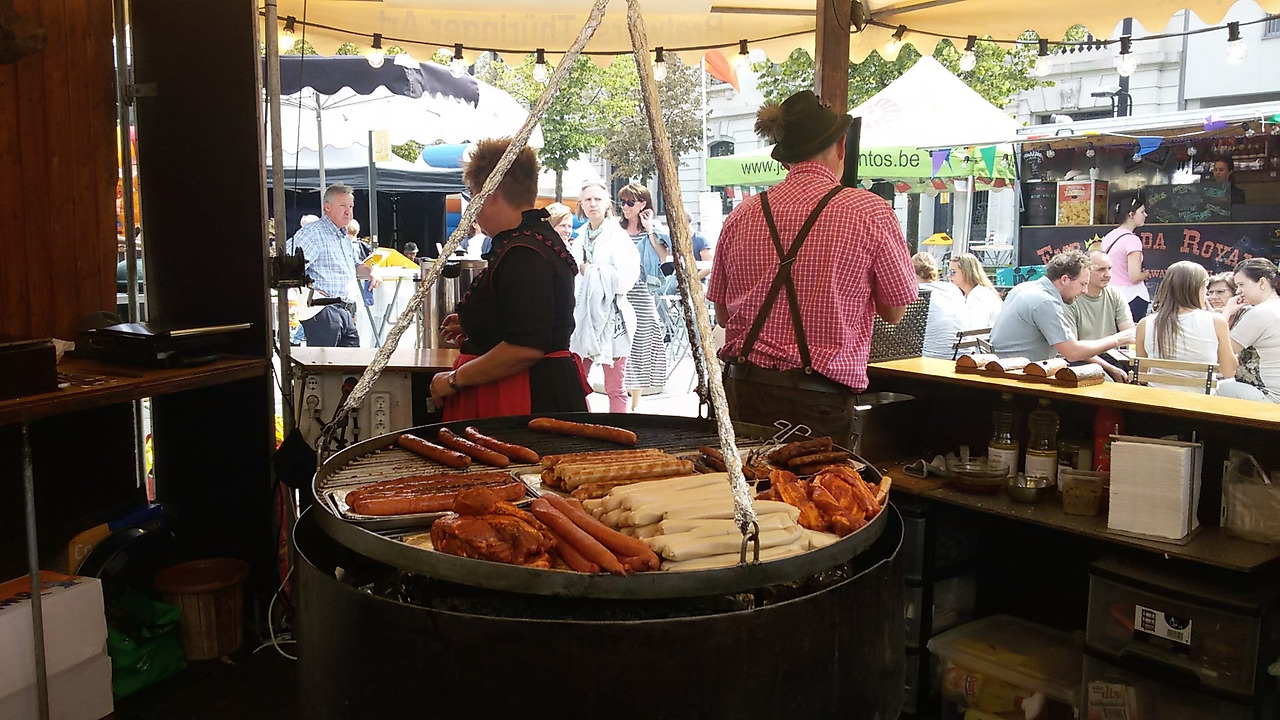 숯불에 굽고 있는 소시지가 푸짐하고 맛있어 보여서 하나 사서 나눠 먹기로했다. 5유로 라는데 소시지가 빵길이의 두 배 정도 되기에 잘라서 주나보다 했는데 그대로 끼워 준다. 소시지를 보니 맥주 생각이 나는데, 마침 옆에서 생맥주를 팔고 있다. 설명을 듣고 세 가지 중 IGA 라는 맥주를 골랐다. 한 잔에 2유로 라는데 시원하고 맛있다. 다른 두 가지는 맛보지 못했지만 잘 고른것 같다.
