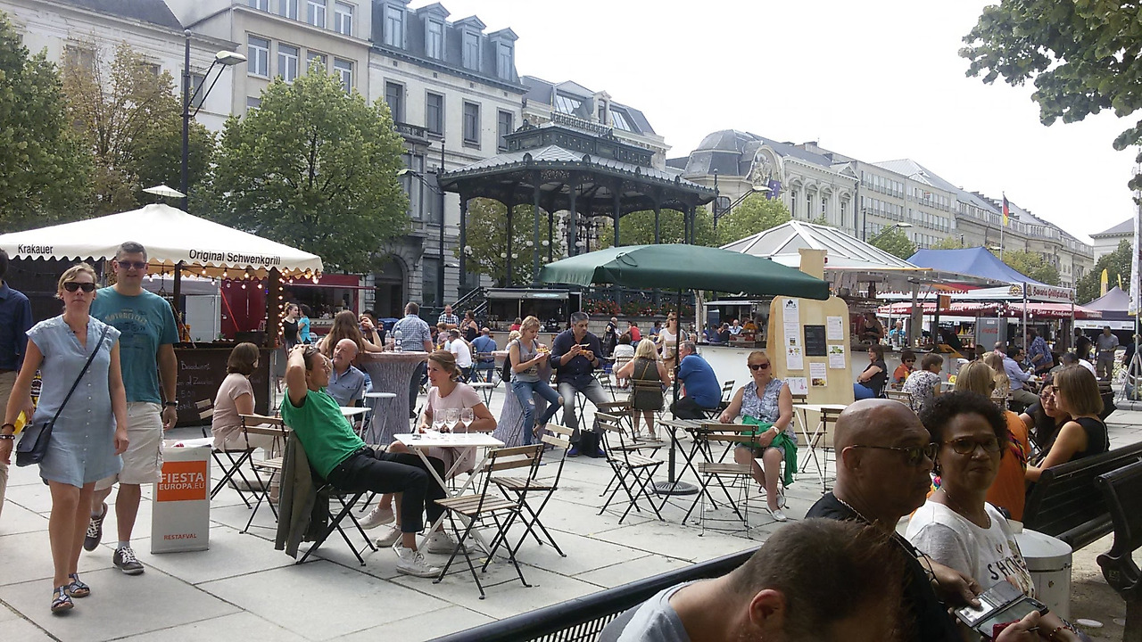 유럽의 광장 한 가운데 테이블에 앉아 소시지를 안주로 맥주잔을 앞에 놓고 앉아 있으니 , 절로 마음 속에서 여유가 넘쳐 나는 듯 느긋한 기분이 든다.