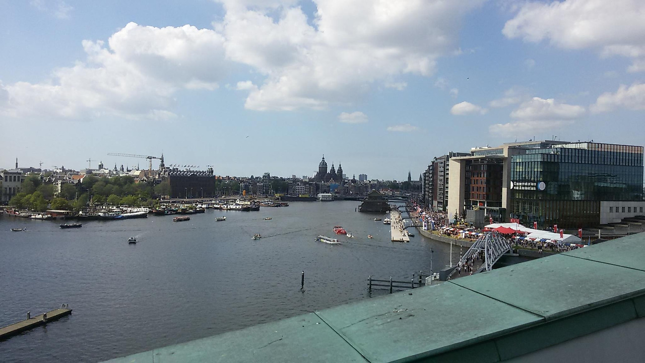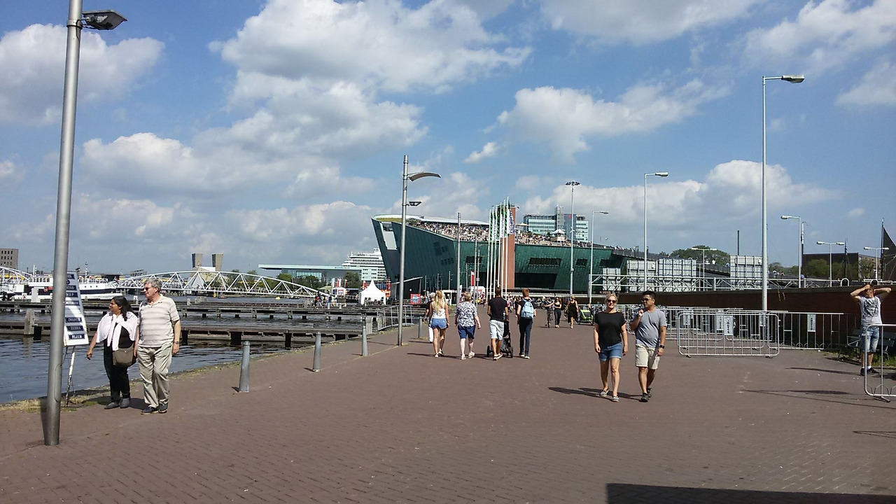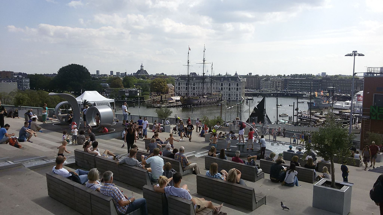 암스테르담 시내에는 운전하기 힘들고 주차하기도 어렵다고 해서, 아예 외곽에 호텔을 잡았다. 호텔 바로 앞에 버스정류장이 있어서 10분도 안걸려서 중앙역에 갈 수 있었다. 버스표는 차에 탄 후에 운전기사에게 구입하는데, 현금은 안되고 카드만 받는다고 한다. 요금은 2.9€ 로 꽤 비싼 편이지만 한 시간 동안은 그 표로 마음대로 탈 수 있는 것 같다. 중앙역 정류장에 내렸는데 , 네모사이언스 뮤지엄이 바로 앞에 보인다. 건물이 재밌게 생기고 꼭대기에 사람들이 많이 앉아 있는 게 보이기에 그쪽으로 가 보았다.
