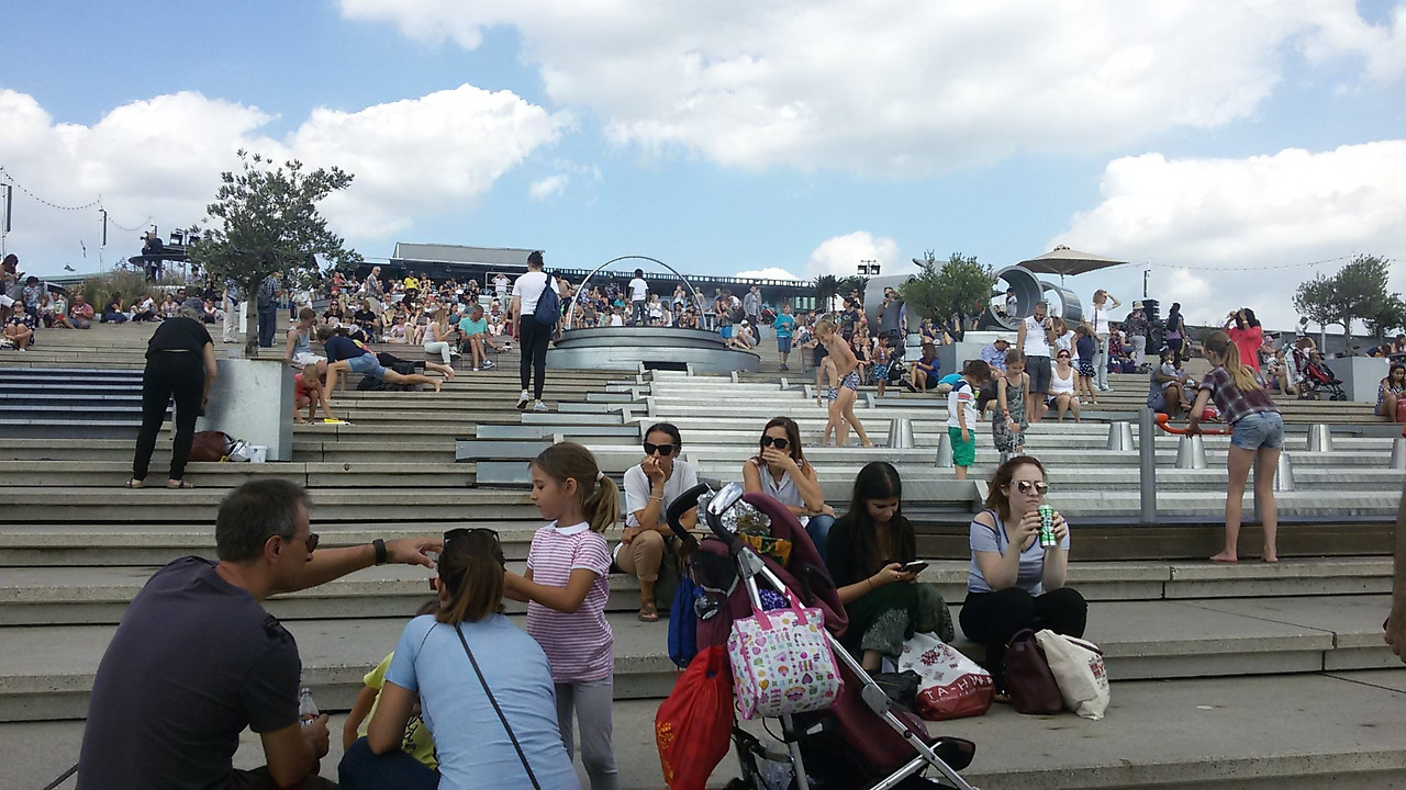 초록색 건물이 사이언스뮤지엄이다. 옥상에 계단식으로 의자가 설치되어 있고, 분수도 있어, 햇볕도 즐기고 아이들은 물장난도 하며 놀고있다.