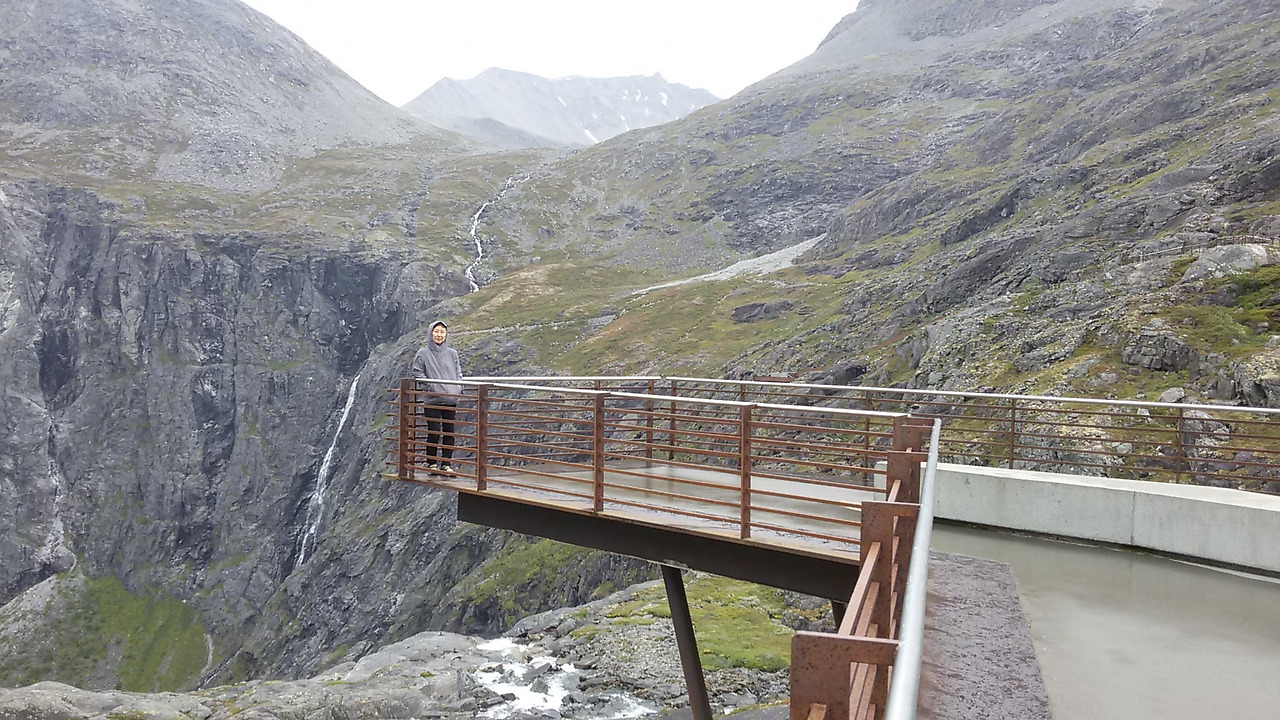오늘은 요정의 길이라는 트롤스티겐을 간다. 가는 길에 전망대가 있고, 밑에 계곡에 있는 폭포가 물의 양도 많고 그 기세가 엄청나다.