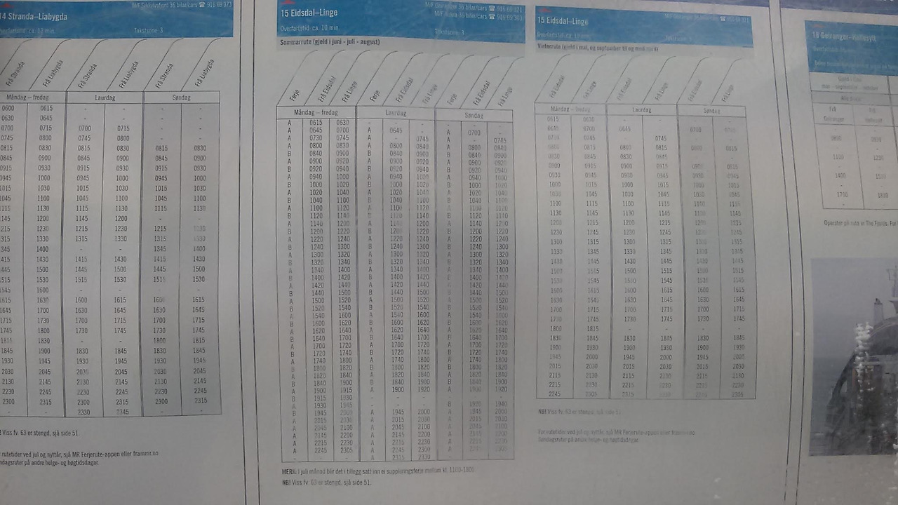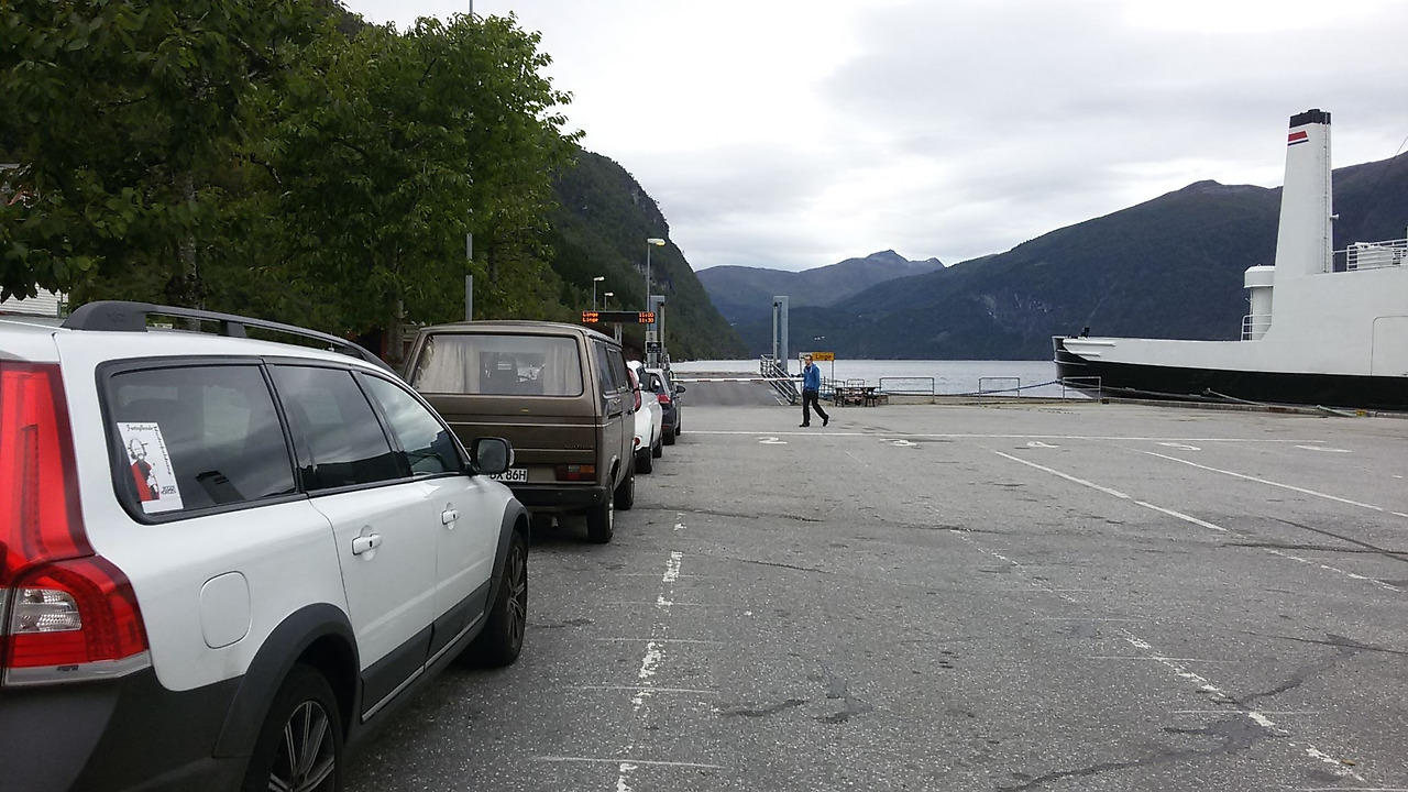 기다리는 동안 차에서 내려 여기저기 둘러본다. 여긴 물색깔이 유난히 시커매서 무서울 정도다. 해초도 자라고 있는데 해초의 크기도 크다. 페리 시간표가 붙어 있는데 거의 24시간 다니는 것 같다. 노르웨이 오기 전에 길이 꼭 페리로만 연결되는 곳이 많다고하여, 어떻게 타는지도 걱정되고 또 시각이 늦어서 페리가 끊기면 어쩌나 걱정했었는데, 일단 닥치면 다 해결된다. 그래도 방심은 금물이다. 알아볼 수 있는 한 충분히 사전에 알아보아야 한다. 생각지도 못한 복병이 튀어 나오기도 하는게 여행이니까.