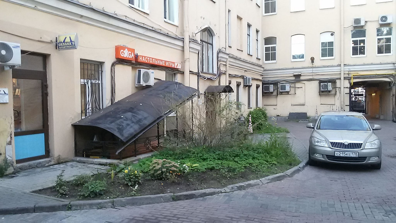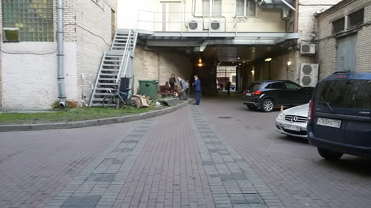 사무실이 있는 안뜰. 차 뒤에 보이는 문 밖이 바로 넵스키대로.