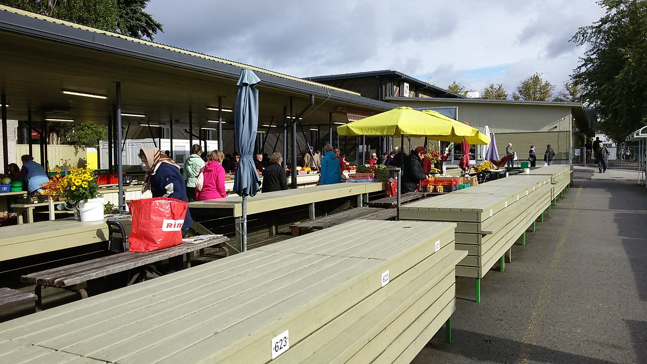 어제 못 본 페르누 시내를 보기 전에 가까운 슈퍼마켓에 들렀다. 어제는 몸이 좋지 않아서 장을 안 보고 비상식량을 먹었다. 슈퍼마켓 옆에는 장이 서 있고 실내에는 수산시장도 있다.