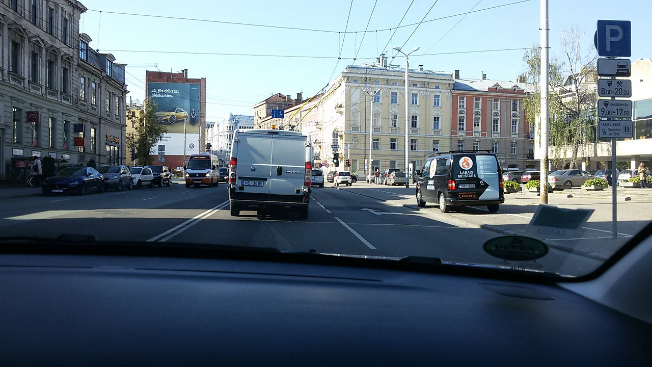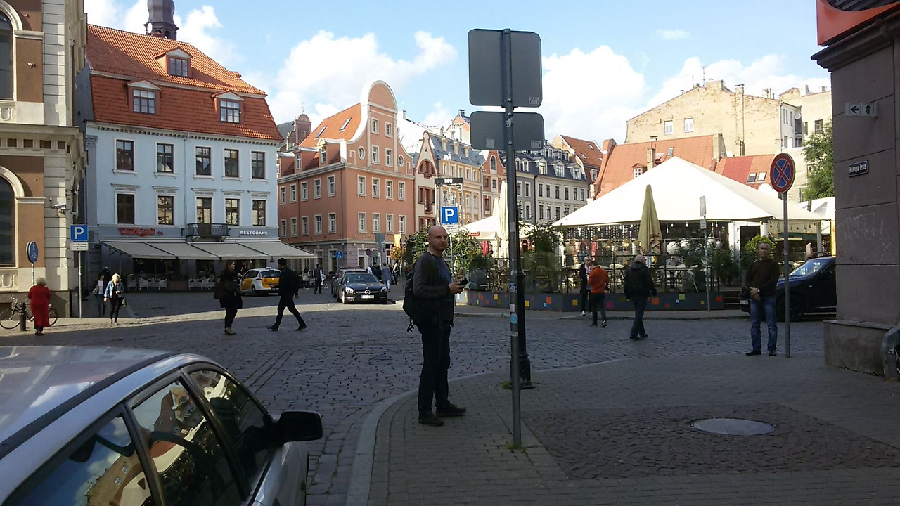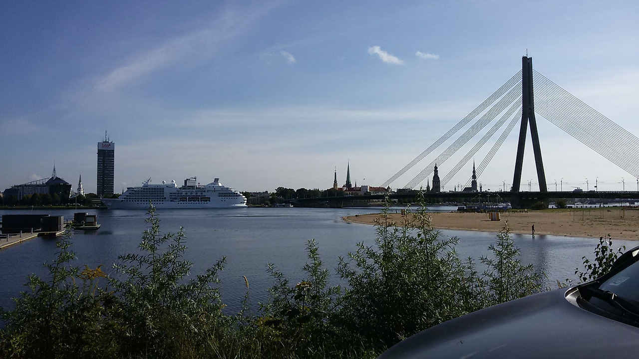 라트비아의 수도인 리가는 꽤 큰 도시이다. 어디에 주차해야 할지 몰라서 parkopedia 를 보니 vansus 다리 건너에 싼 주차장이 있고, 다리만 건너면 구시가지이길래 내비에 찍고 찾아갔다. 주차장은 넓은데 돈 내는 기계에 돈 넣는 구멍이 없다. 두리번거리다 남편이 마침 차를 주차하는 남자에게 물어보니 , 여기는 회사에서 내주거나 아니면 모바일로만 낼 수 있다고 하면서 길 건너편 강가에 가면 무료로 세울 수 있다고 알려 준다. 다리 밑으로 돌아서 건너편으로 가니, 정말 강을 따라서 쭉 주차해 놓았다. 한참을 자리를 찾아 길을 따라가다가 어떤 차가 나가는 자리에 겨우 주차를 했다. 현지인들에게도 인기 있는 무료 주차 공간인 듯 빈자리를 찾기가 힘들다.