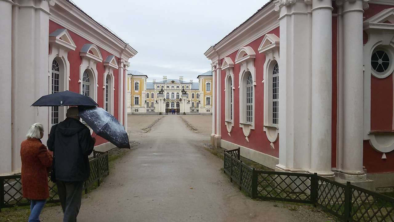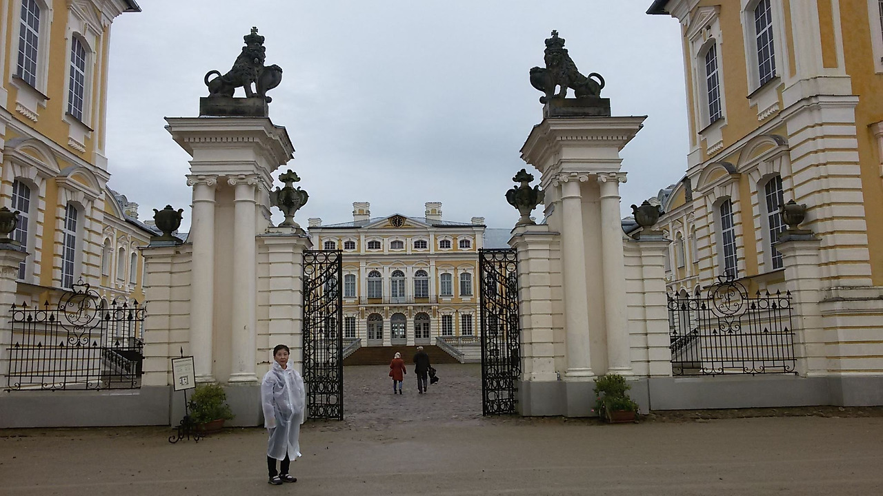 룬달레 궁전까지는 10여분밖에 걸리지 않았다. 주차장에 도착하니 비가 쏟아진다. 쉽게 그칠 것 같지 않아서 어떡하나 망설이다가 , 기왕 온 거 보고 가자 하고 비가 좀 뜸한 틈을 타 우비를 입고 성으로 향했다.
