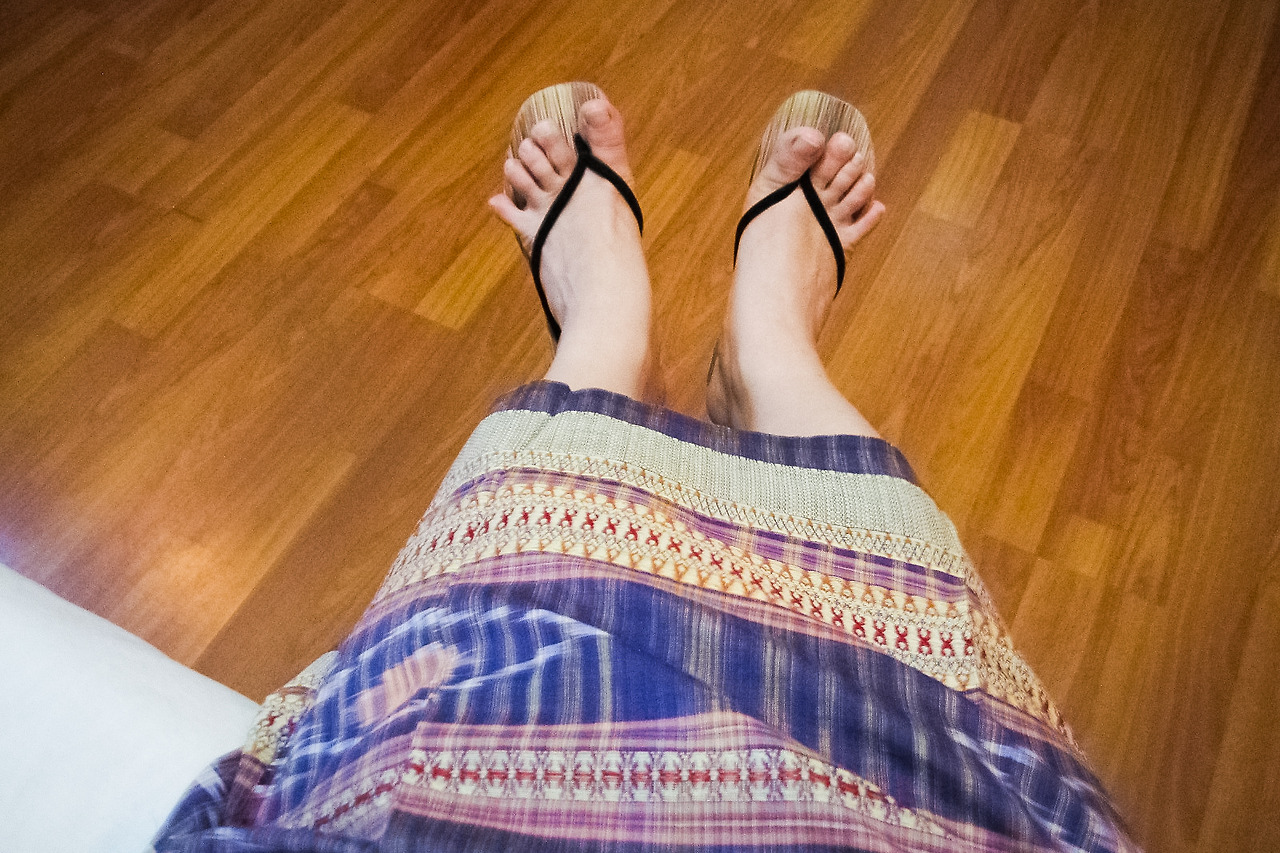 100불짜리 한 장이 두툼한 돈뭉치 세 개로 바뀝니다. 부자가 된 느낌입니다. 돈을 받아들고 돌아가려니 론지(longyi, 미얀마 전통 복장)도 사라며 수줍게 권유합니다. '뭐 안 그래도 사려고 했으니까...' 푸른색 론지를 고르고 입는 법도 배웁니다. 내가 생각해도 난 정말 쉬운 손님입니다. 여동생은 위험하니 돈 잘 챙기라는 얘기도 빼놓지 않습니다. 쉬운 손님인 게 티가 났나 봅니다.