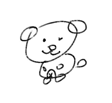 좌측의 강아지를 그리도록 말로 설명 받았을 때, 내가 그린 결과물.