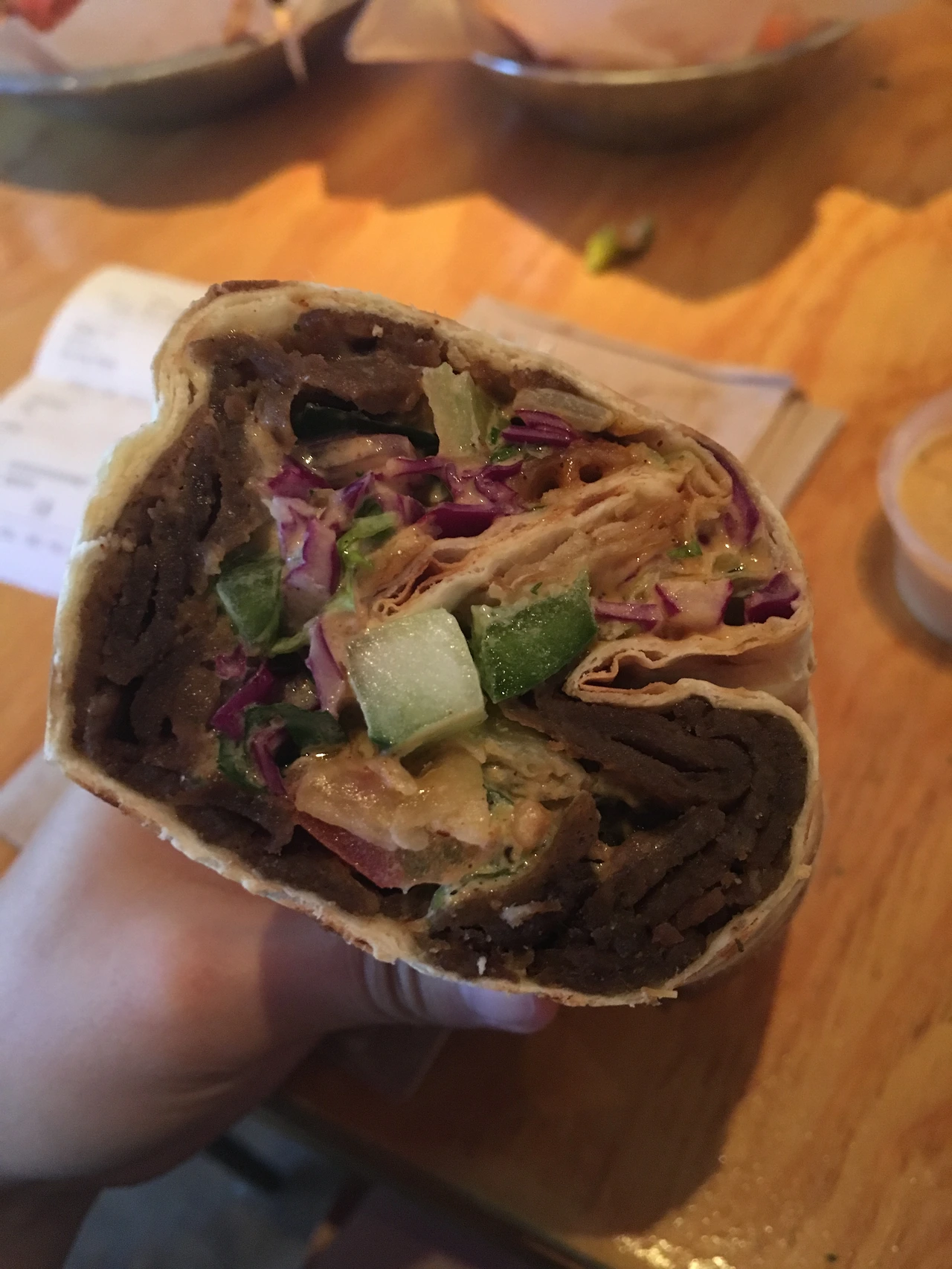 타코와 부리또는 미국인들이 정말 좋아하는 음식 중 하나다. 길거리에 푸드트럭이 있다? 높은 확률로 타코와 부리또 트럭이었다. 특히 새벽에 클럽 앞에 쭉 서있고 다들 홀린 듯이 사먹는다. 한국인 친구는 부리또를 그야말로 사랑했다. 양이 많아 하나만 먹어도 배가 부르다며 가성비가 아주 좋다고 매일같이 먹던 친구였다. 나도 친구가 그 맛이 궁금해 퇴근길에 사보았는데 한창 먹다가 머리카락이 나온 후 다시는 방문하지 않았다. 푸드트럭은 위생이 아무래도... 맛은 고기가 든 포케를 또띠아에 말아놓은 느낌이다. 나쁘지는 않았지만 그렇다고 내 입맛에 딱 맞지도 않았다.