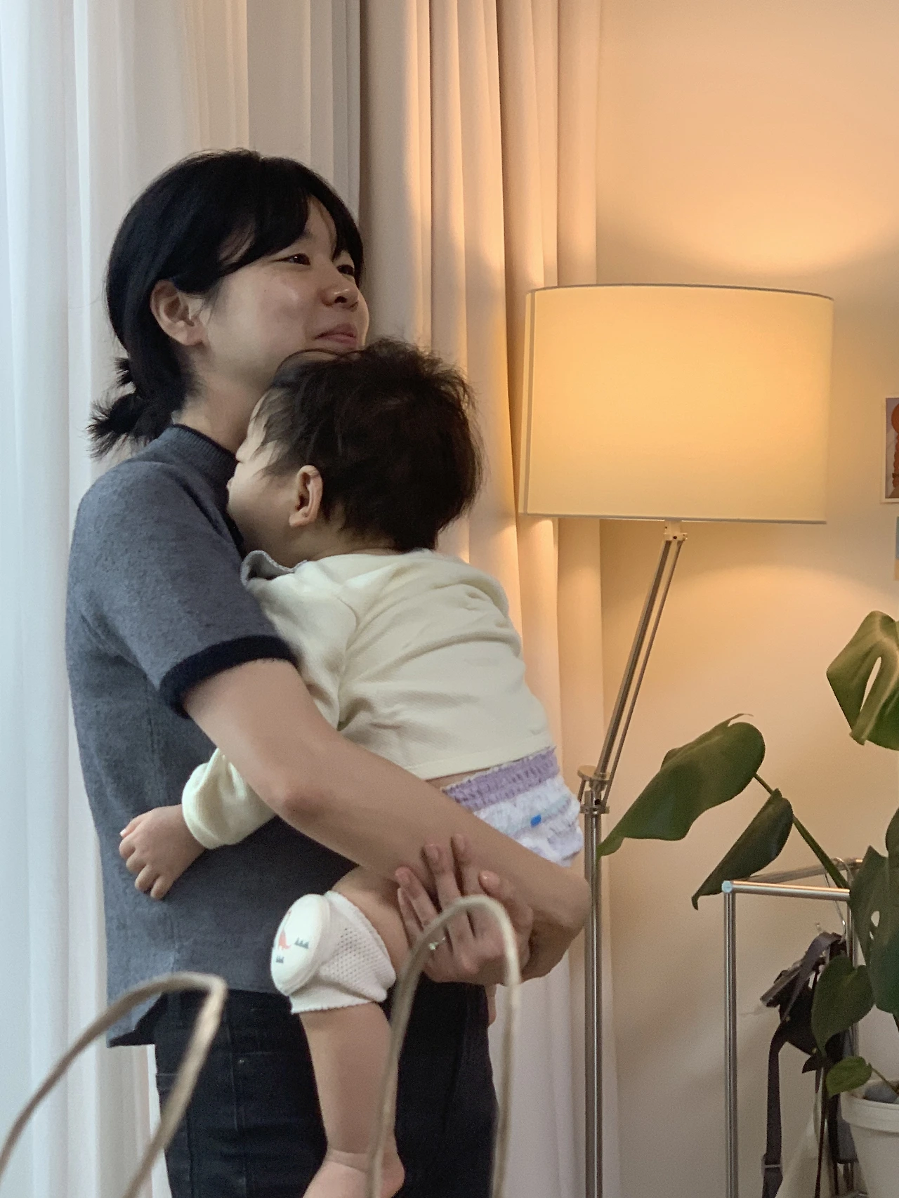 이틀 내내 비가 내리네. 날이 흐려 너의 침대 커버가 잘 마르지 않아 요 며칠 엄마 아빠와 함께 자는데 평소보다 더 깊이 자는 것 같아. 아빠의 코골이도 자장가처럼 들리는가 봐.