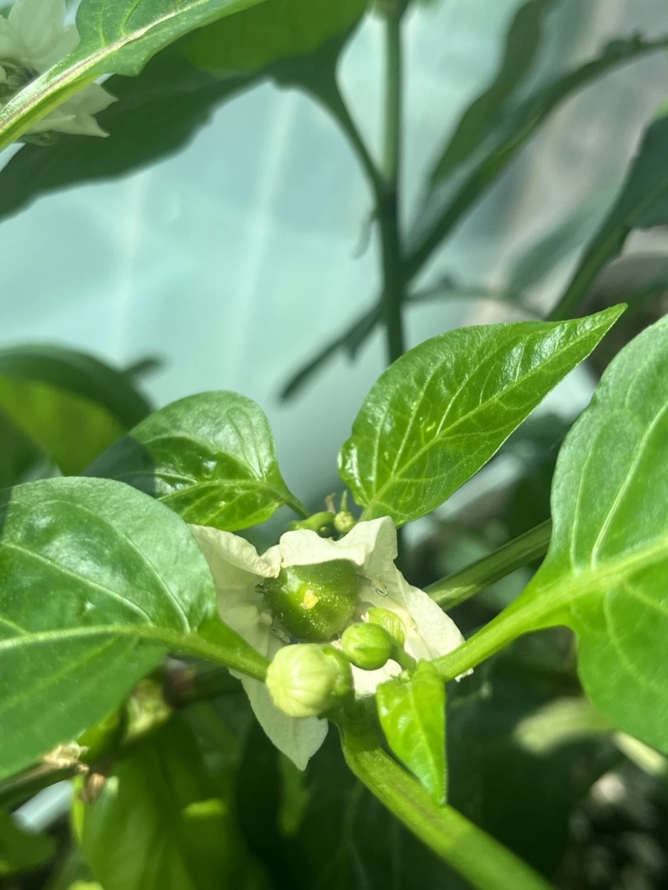 3. 그 열매가 점점 커지며 꽃을 뚫고 나오면 이렇게 아기 파프리카가 됩니다. 엄청나게 귀엽습니다.