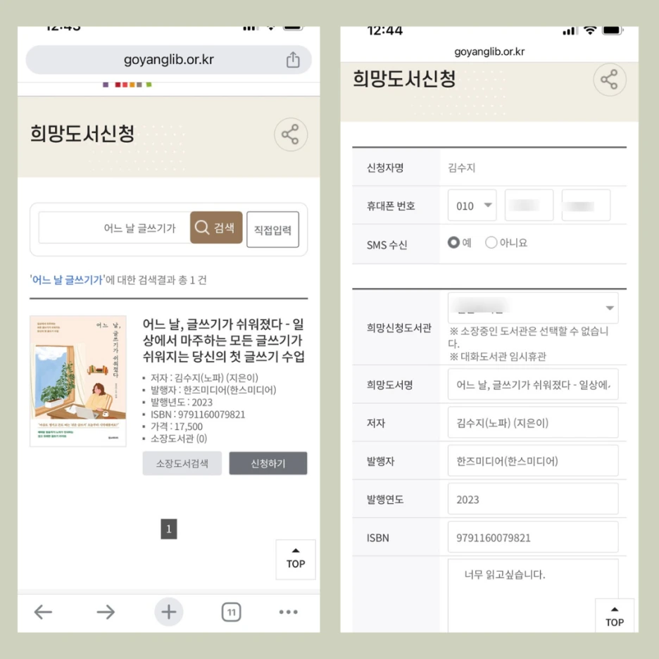 그러나 여전히 책값이 아까우시다면 도서관에 신청해서 보는 방법도 있습니다.
