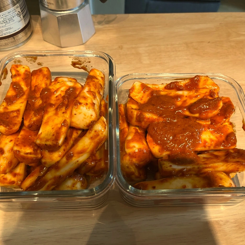 모자란 고춧가루는 고추장으로 채워줬고, 찹쌀풀은, 쌀 빵 만든다고 사놓은 쌀가루 강력분이 있어서 그걸 물에 개어 넣었습니다. 양파도 갈아서 넣으라는데 뭐 이렇게 시키는 게 많은지, 귀찮아서 패스했습니다.