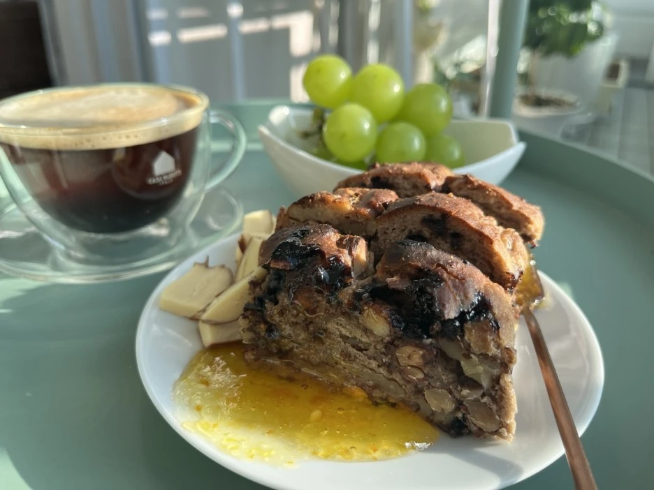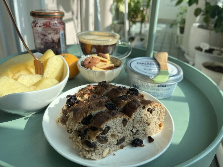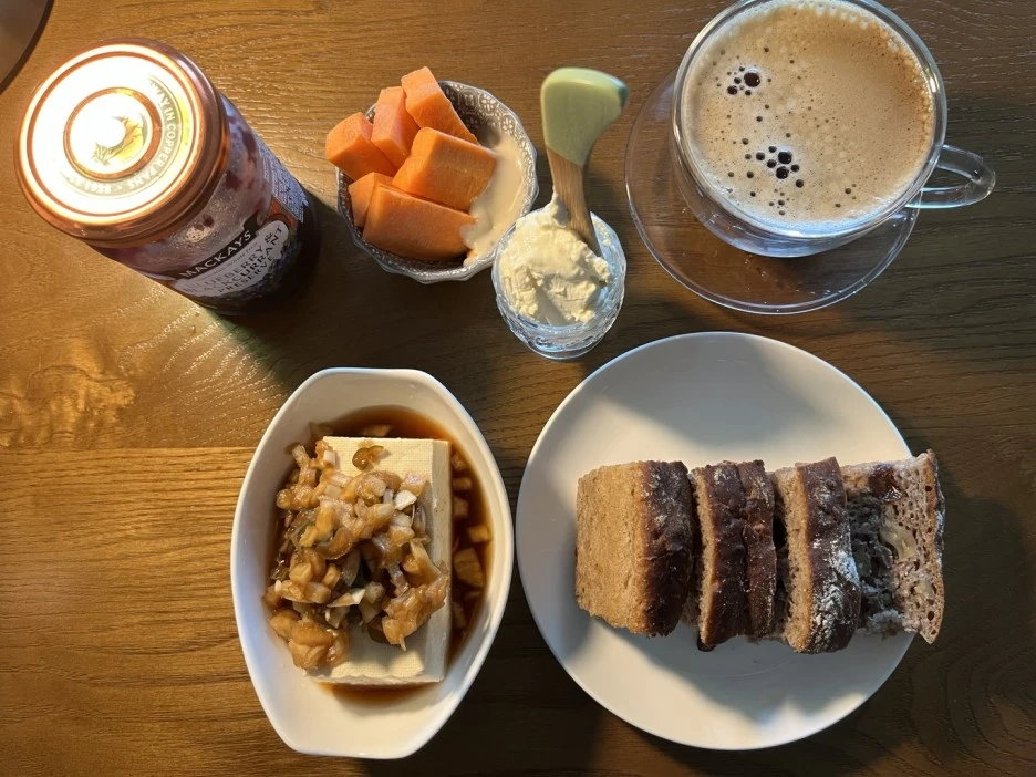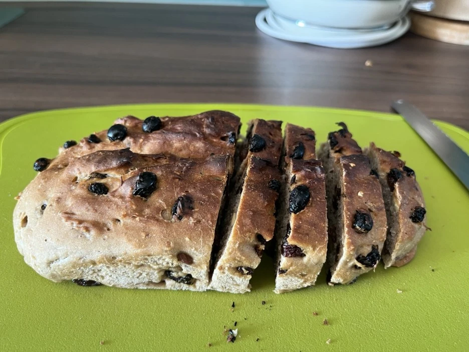 냉동한 호밀빵을 먹을 때도 오븐에 10분만 구우면 겉바속촉이 되어 막 구운 것처럼 맛이 좋습니다. 정 바쁘면 전자렌지로 돌려먹어도 괜찮습니다.