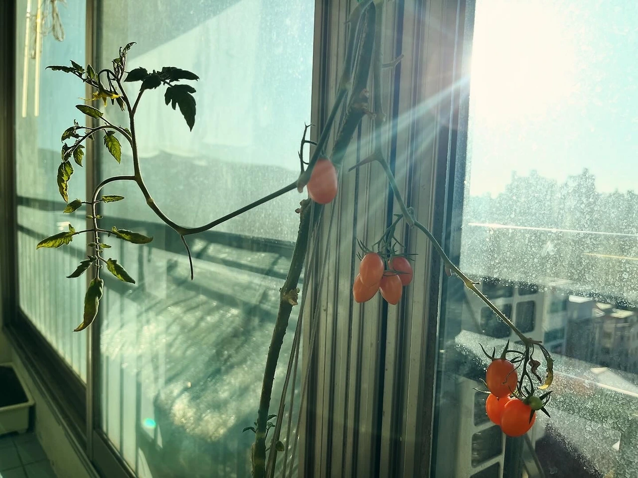 계속 바람을 맞다가는 토마토가 우리집 사당나무가 될성싶어 샷시 이음매를 아예 실리콘으로 단도리해얄 것 같습니다.