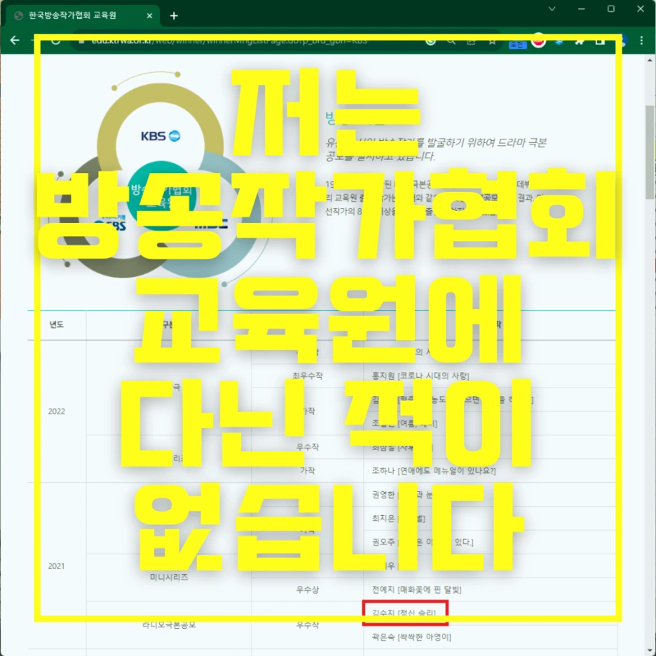 그러나 저는 한국방송작가협회 교육원에 다닌 적이 없습니다. 왜냐면 저는 돈이 없고, 이런 데는 비싸기 때문입니다.