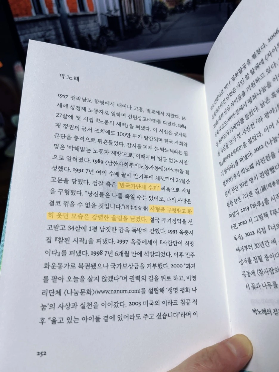 이게 바로 박노해 작가가 사형선고를 받고 환하게 웃었다는 그 순간을 기록한 사진입니다.