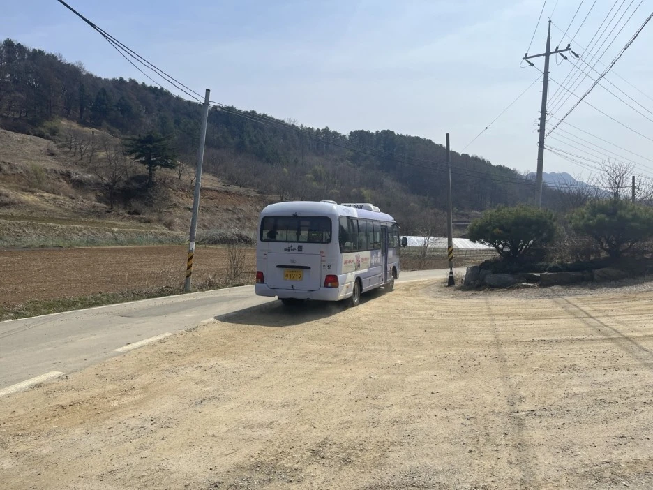 그때였습니다. 눈앞에서 마을버스가 뒤뚱뒤뚱 올라오는 것이 보였습니다. 이 버스로 말할 것 같으면, 하루에 네 번밖에 다니지 않는 매우 귀한 것으로, 저것은 그중에서도 가장 귀한 막차였습니다.