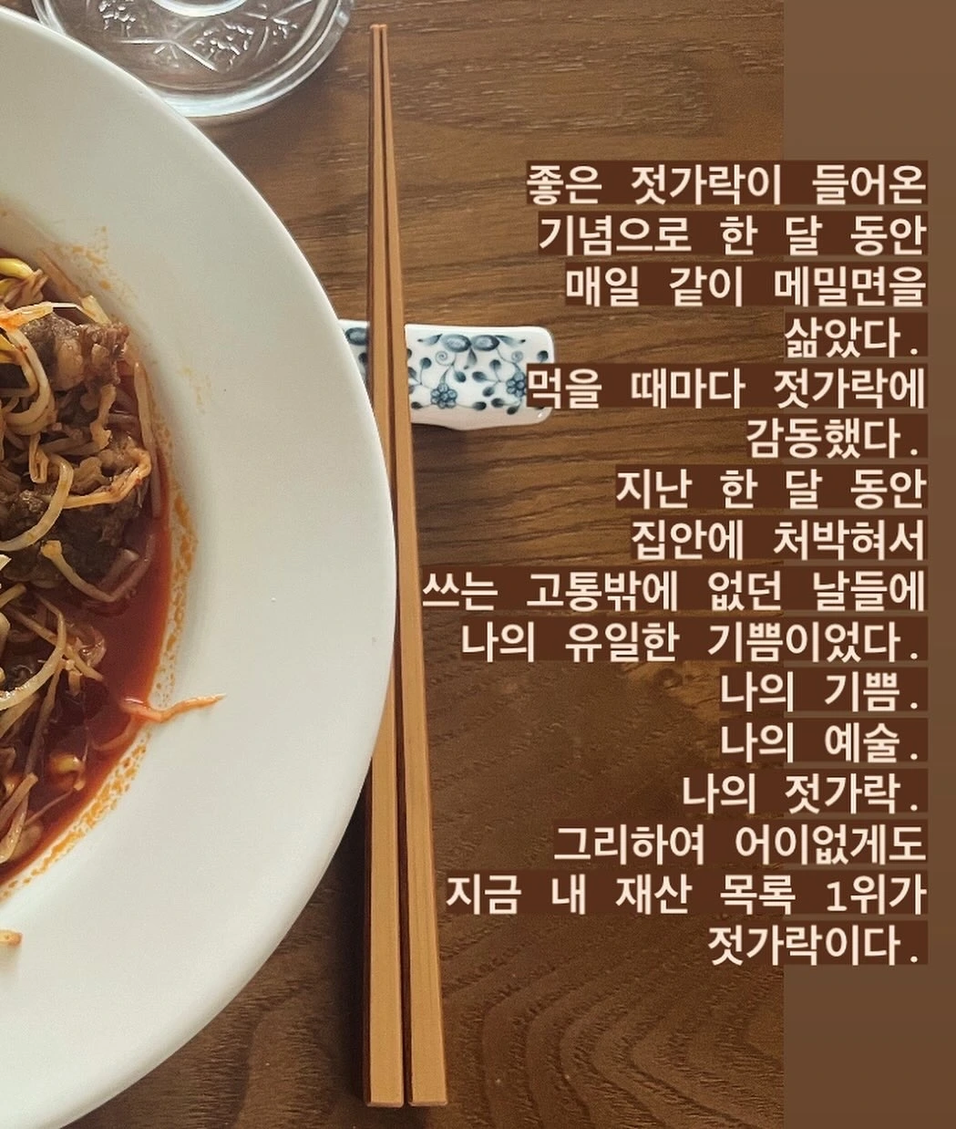 지금 내 재산 목록 1위가 젓가락이다.