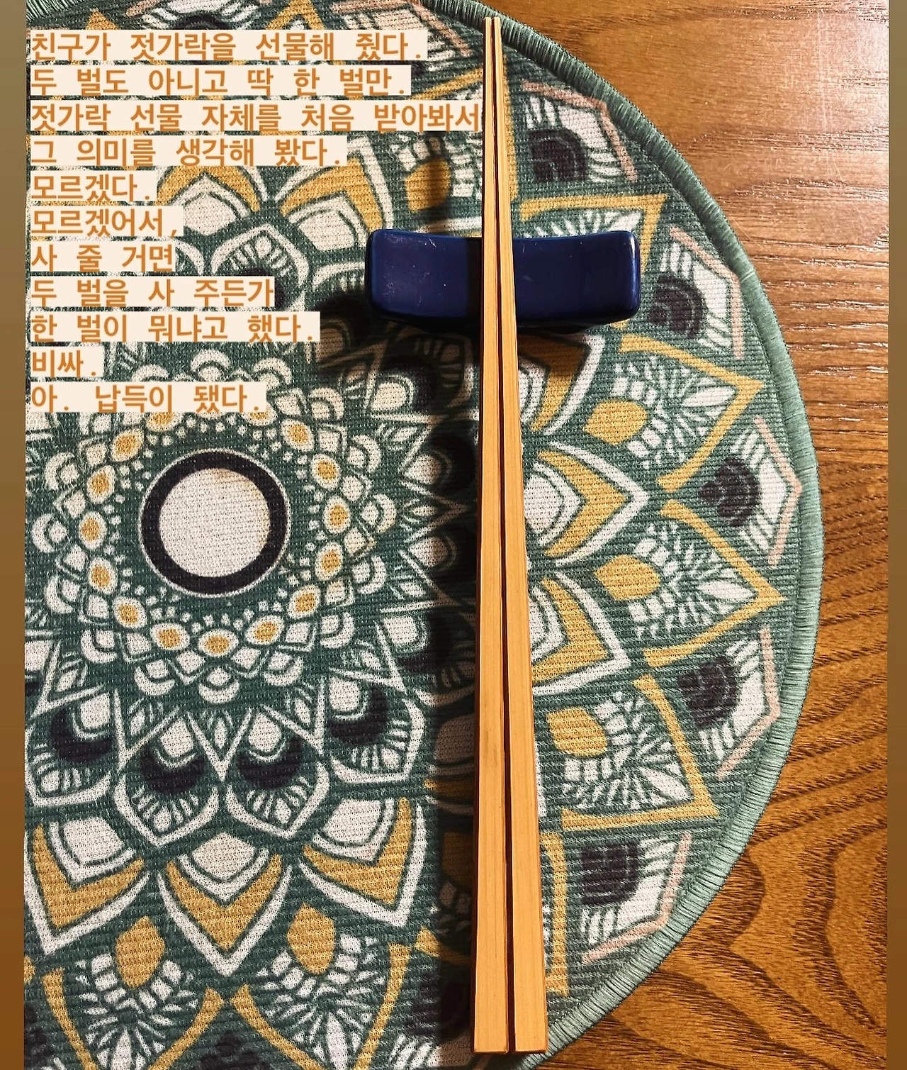 젓가락 선물 자체를 처음 받아봐서 그 의미를 생각해 봤다.