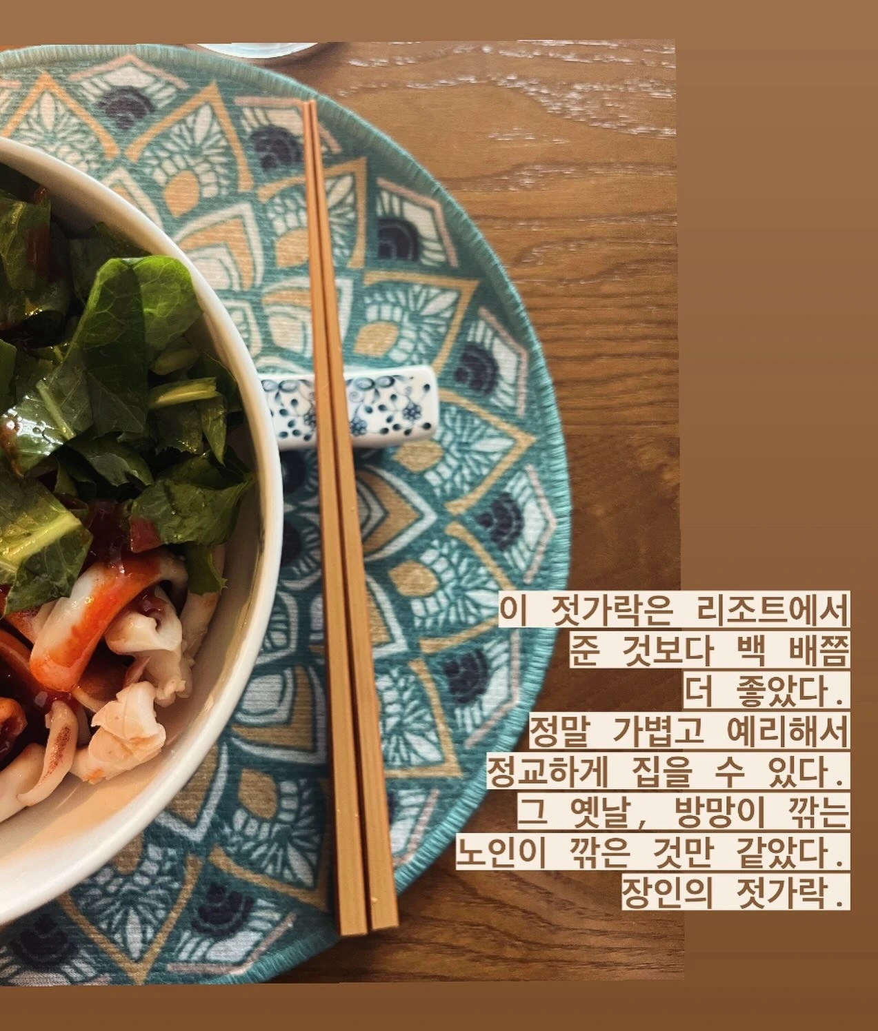 이 젓가락은 리조트에서 준 것보다 백 배쯤 더 좋다.