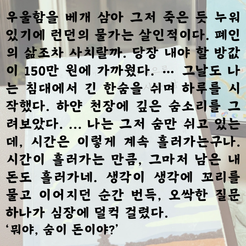 내게는 박정미의 이 결심이 마치 돈과 생존 사이에서 벌이는 세기의 대결처럼 보였다.