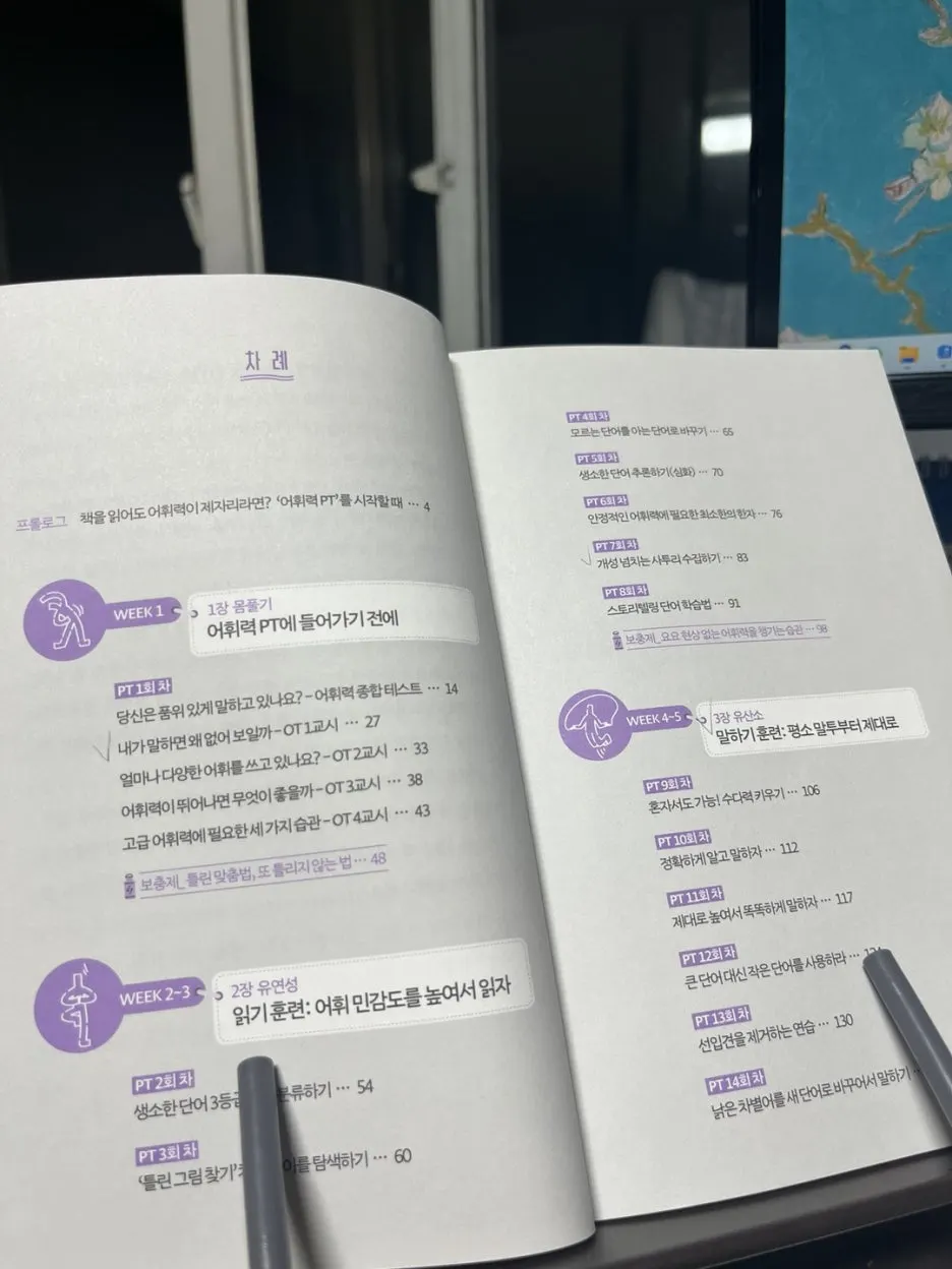 뭐가 다르냐면, 구성부터 다릅니다. 원래 이런 정보 전달책은 처음부터 쭉 읽는 것보다 목차를 보고 가장 읽고 싶은 부분부터 골라 읽는 것이 학습 효과가 높은데, ‘어휘’라 주제를 가지고 이렇게 쓰기, 말하기, 읽기, 그리고 단어 학습법까지, 체계적으로 구성하기란 좀처럼 쉽지 않습니다.