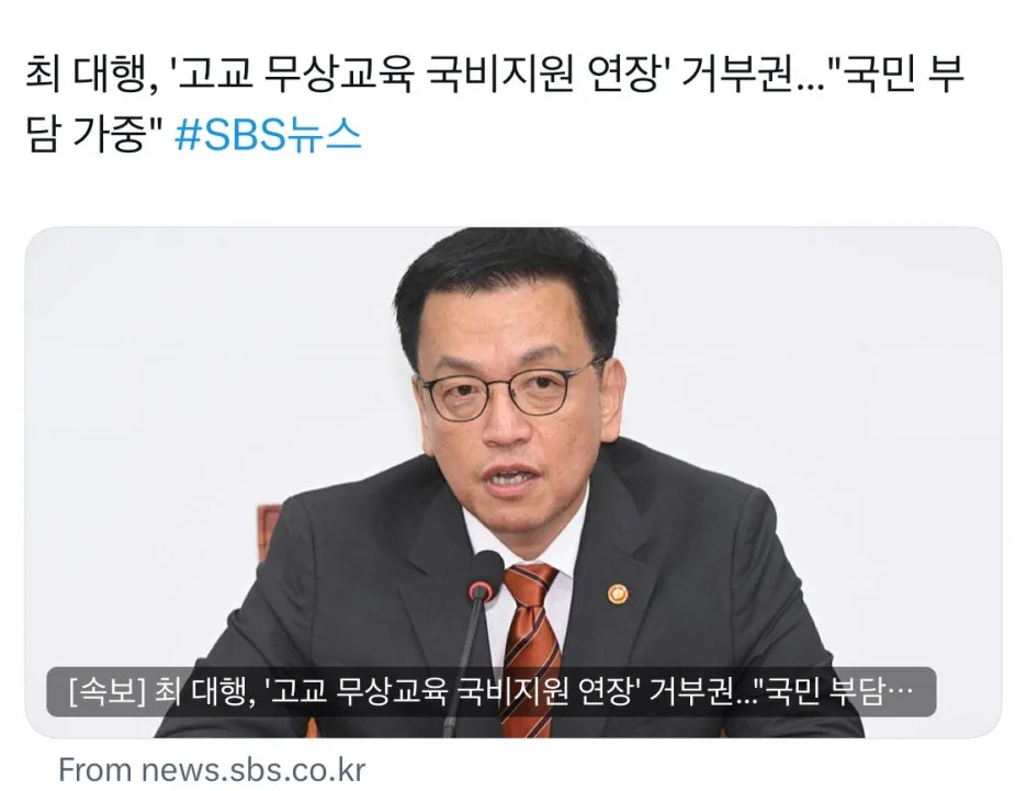 학생들에게 무료로 급식을 줄 수 없다며 주저앉아 엉엉 울지를 않나, 고등학생들을 공짜로 공부시키는 법안에 거부권을 행사하지 않나. 그것도 대통령도 아닌 대행이.