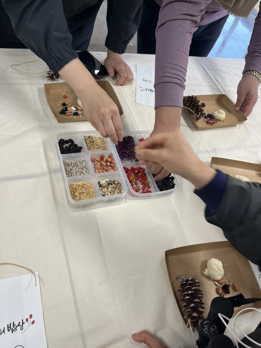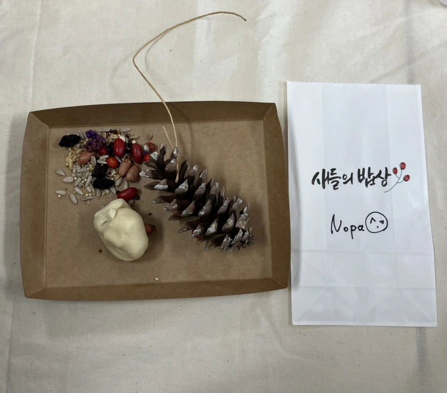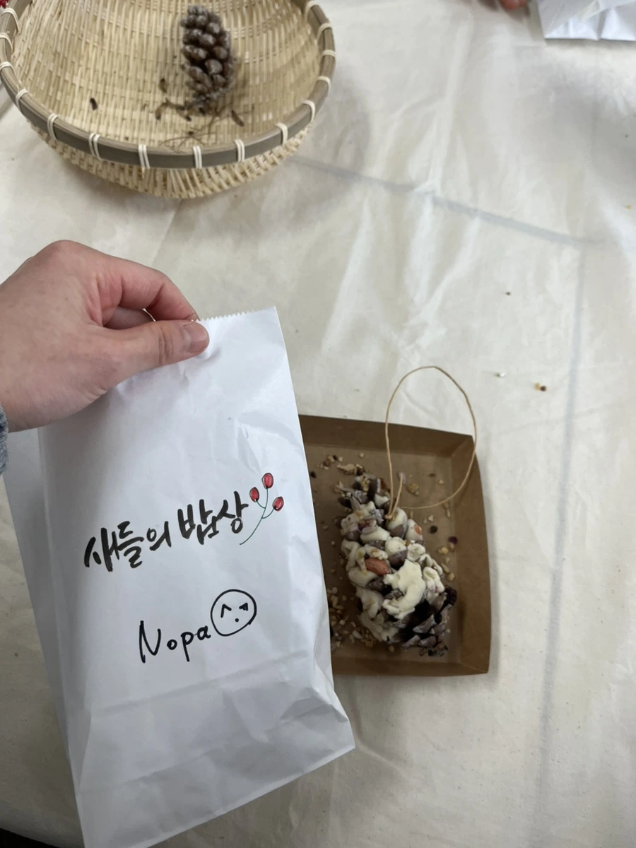 프로그램의 피날레는 행주산성에 가서 내가 만든 버드 케이크를 나무에 걸고 새가 모여드는 모습을 지켜보는 것이다.
