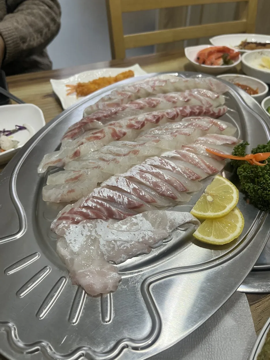 파주 현지인만 아는 맛집이라고 했다. 원래 김포에 저렴한 숭어 집을 가려다가 문 닫아서 간 곳인데, 출혈이 꽤 있었다. 내가 사는 게 아니라서 먹을 수 있었음.