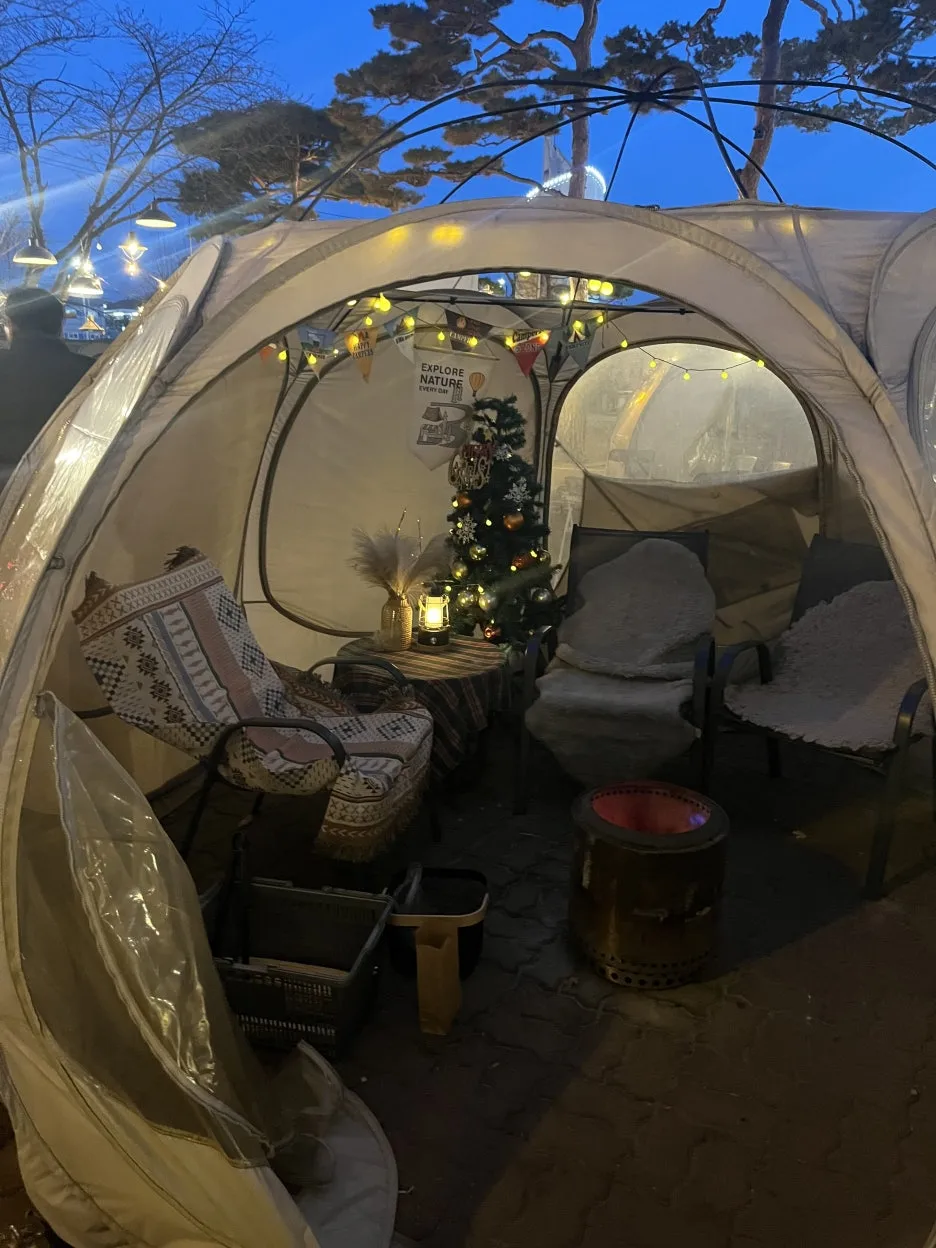 야외에 캠핑 텐트 설비도 갖춰놨는데, 3만5천원 지불하면 고구마랑 뭐랑 구워먹을 수 있게 챙겨준다고 함.