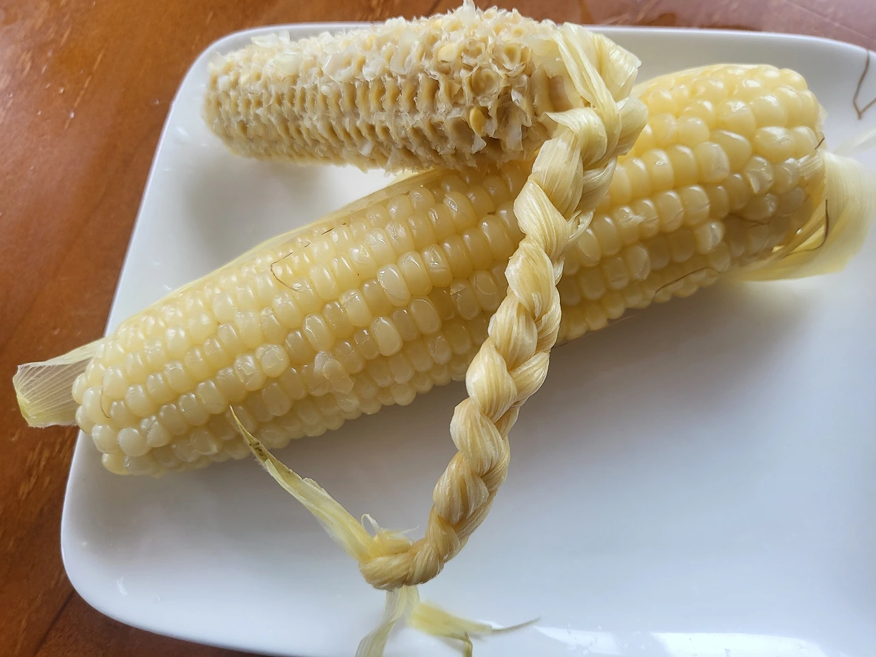 삶아낸 옥수수 이파리로