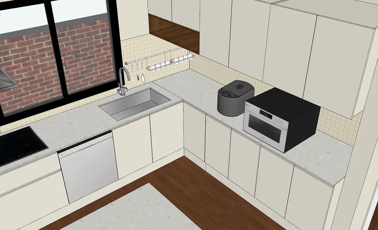 1층의 현관문을 열면 바로 보이는 주방에는 크림색 타일을 붙이기로 했다. 워낙 아이보리, 오트밀 계열의 색을 좋아하기도 하고, 부엌은 뭐니 뭐니 해도 화이트가 깔끔하다고 생각했으니까.
