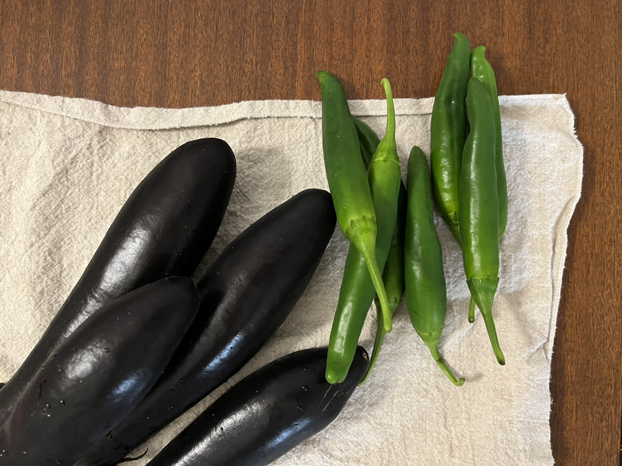 그리하여 우리 집으로 배달 온 결과물들이다. 가지, 고추, 상추 모두 농약 없이 기르셨다는데 싱싱하고 탄탄하고 맛도 좋더라. 바로 그날 가지를 넣고 파스타를 해 먹었는데 아이들이 어찌나 잘 먹던지..