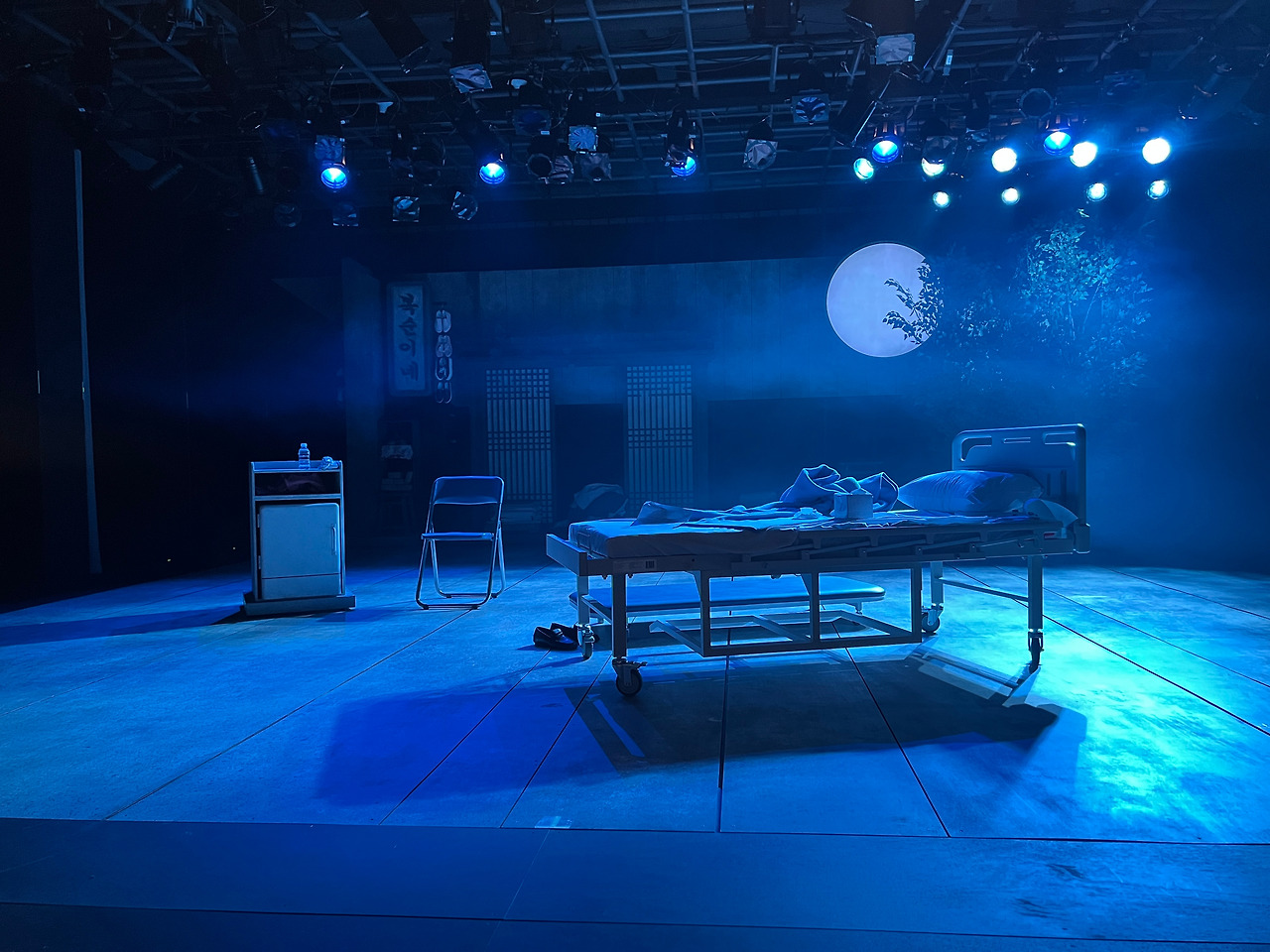 소극장에 들어서니 푸르스름한 연기가 가득 찬 무대가 펼쳐졌다. 보름달 환하게 뜬 어느 시골집 평상의 풍경을 보며 극의 배경을 대충 가늠해 보았다. 무대 뒤편, 조명이 드리우지 않는 곳에 놓인 몇몇 무대 세트들도 보였다. 요즘 연극은 무대 세트를 굳이 가리지 않는구나란 생각이 들었다.