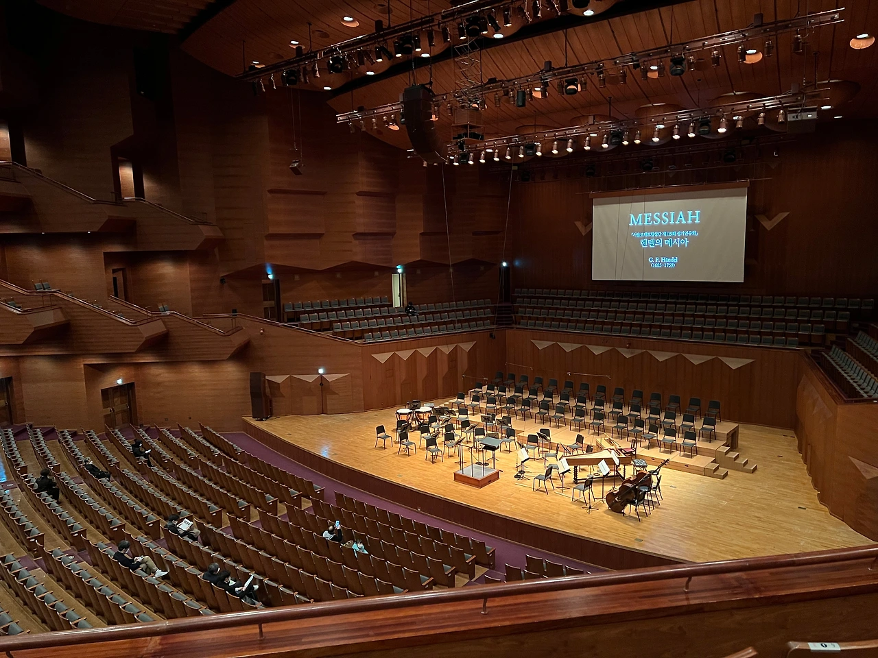 서울모테트합창단의 메시아 공연을 보러 예술의 전당으로 갔다. 코로나 상황에서 현장 직관, 그중에서도 합창 공연은 드물기에 더욱 귀하게 느껴졌다. 오랜만에 들어선 대극장. 방역 셧다운 방침에 따른 밤 10시 운영 제한으로 곡 일부가 생략되었다는 안내문구가 날 맞이했다.