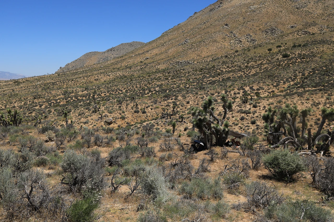 커다란 선인장 나무인 조슈아 나무 밑 그늘에 해를 피해 숨어있는 하이커들에게 눈 인사를 했다.