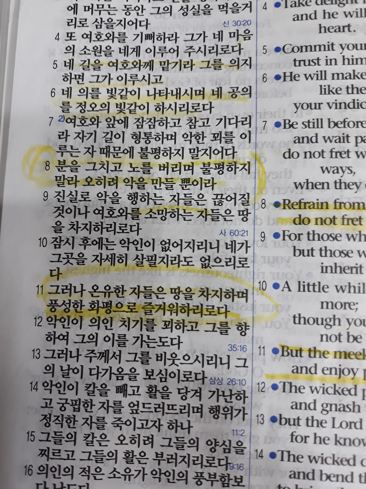 온유한 자들은 땅을 차지하며 풍성한 화평으로 즐거워하리로다 -시편 37편 11절-