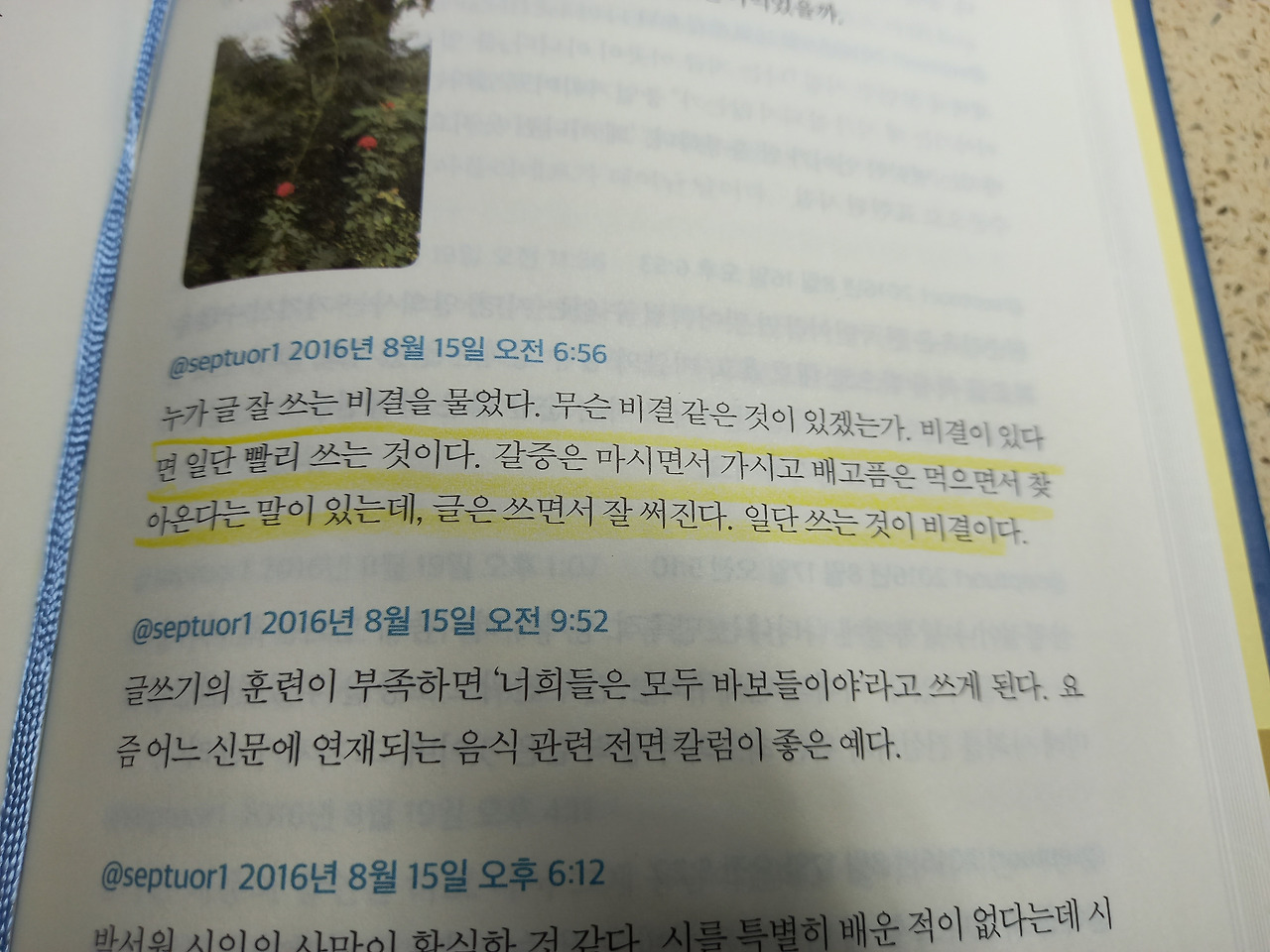 최근에도 글쓰기 관련 책들이 쏟아지던데 전혀 관심이 가지 않는다. 이유는 딱 한 가지다. 아무리 그런 책들을 읽고도 본인이 쓰지 않으면 아무 소용이 없기 때문이다. 그냥 써야 한다.