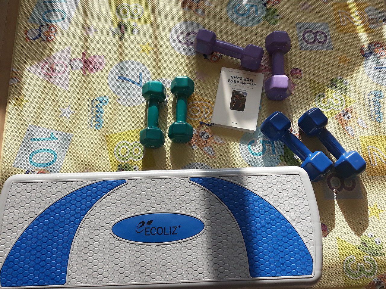 한 평짜리 뽀로로 매트, 몇 개의 아령, 스텝박스, 무라카미 하루키의 작품에 나오는 음악만 있으면 내 몸의 근육 하나하나에 집중할 수 있다. 얼마나 오랜만에 홈트이고 땀이었는지 처음 근력 운동을 시작했던 초심이 새록새록 떠올라 감회에 젖었다.